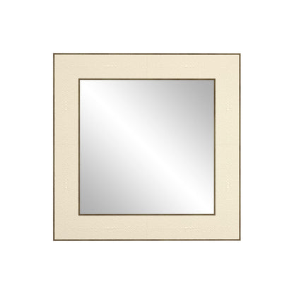 Luxurious and exclusive, the Raphia Mirror in small square size boasts an ivory faux shagreen design with an antique brass surround.