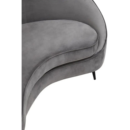 Indulge in the luxurious sculptural design of the Hasina Three Seat Grey Velvet Sofa. Its plush foam cushioning embraces you in unmatched comfort, while its sleek matte black metal legs provide both style and stability. Elevate your living space with this exclusive piece, crafted with premium grey velvet fabric.