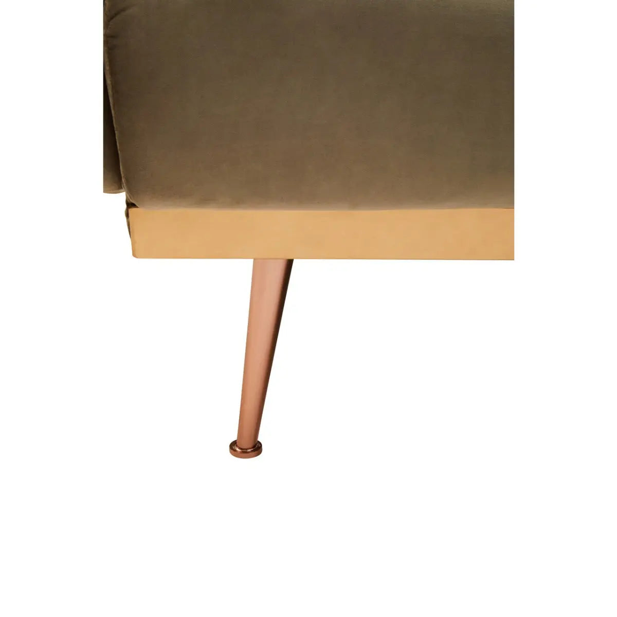 Indulge in luxury with the Hatton sofa bed, featuring sumptuous mink velvet upholstery. Its foam padded seat is accented by angular arms and back, while the backrest can be transformed into a bed with its lowering mechanism. Complete with sleek Rose gold finish metal legs for added glamour.