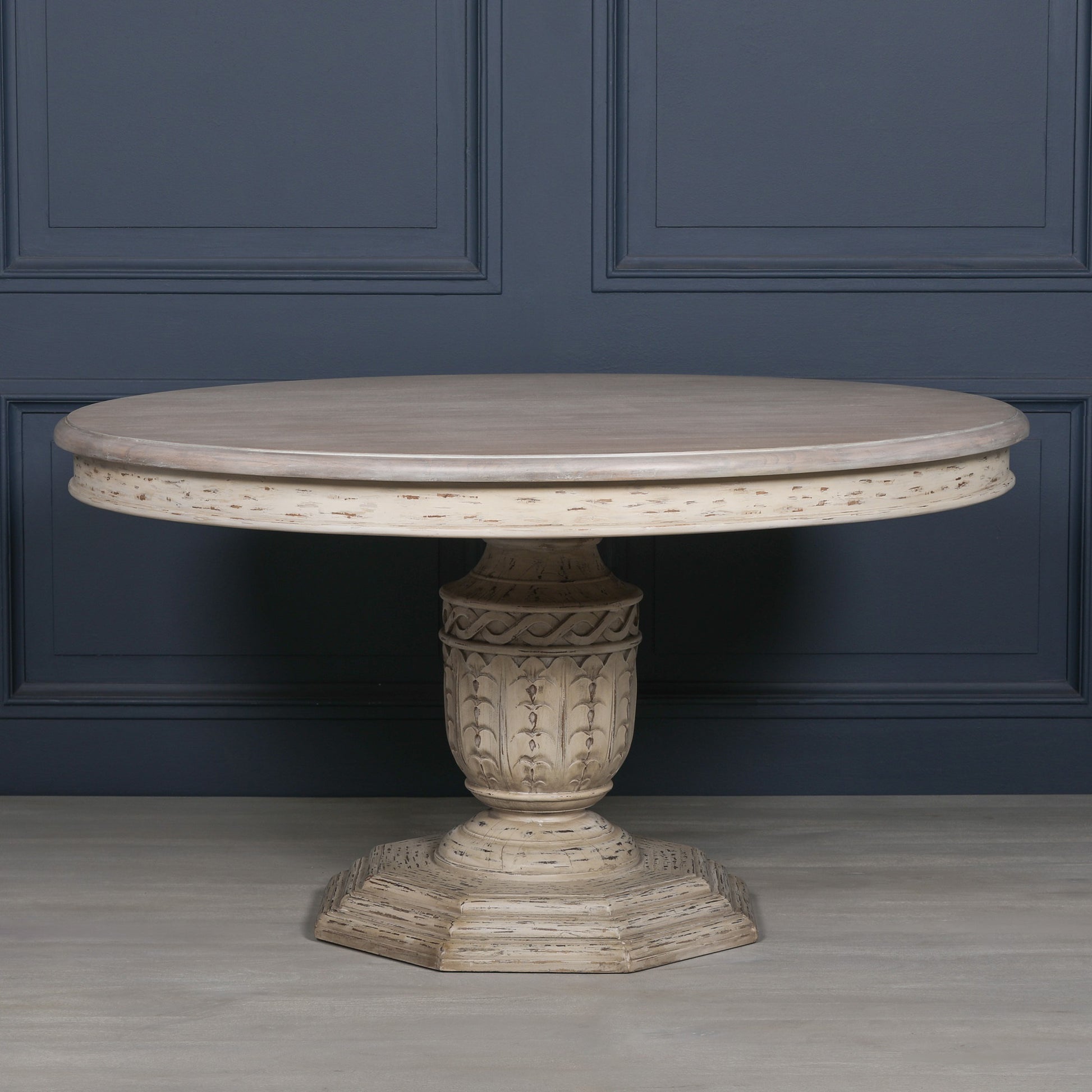 Indulge in the luxury and elegance of our Heavy Distressed 145cm Round Dining Table. With its exquisite design and premium craftsmanship, this table is a timeless addition to any dining space. The heavy distressed finish adds a touch of sophistication, making it a statement piece that will elevate your dining experience.