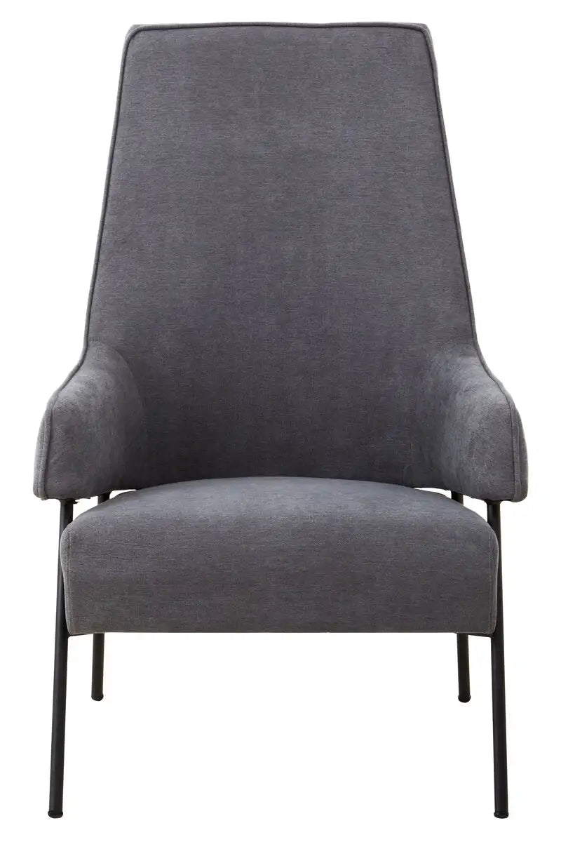With its luxurious plush ash velvet upholstery, this chair boasts a tall back and elegantly tapered design. A small cutout detail adds interest to the padded seat and straight arms while the sleek black finish of the angled legs elevates its visual appeal.