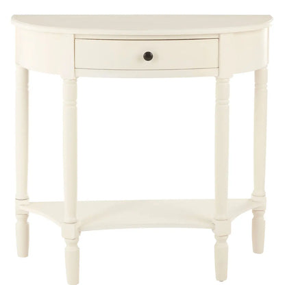 Handcrafted from antique white-finished pine wood, this elegant console table boasts intricately carved spindle legs and a lower open shelf, while a rectangular drawer offers ample storage space. The traditional design exudes a charming touch of countryside sophistication.