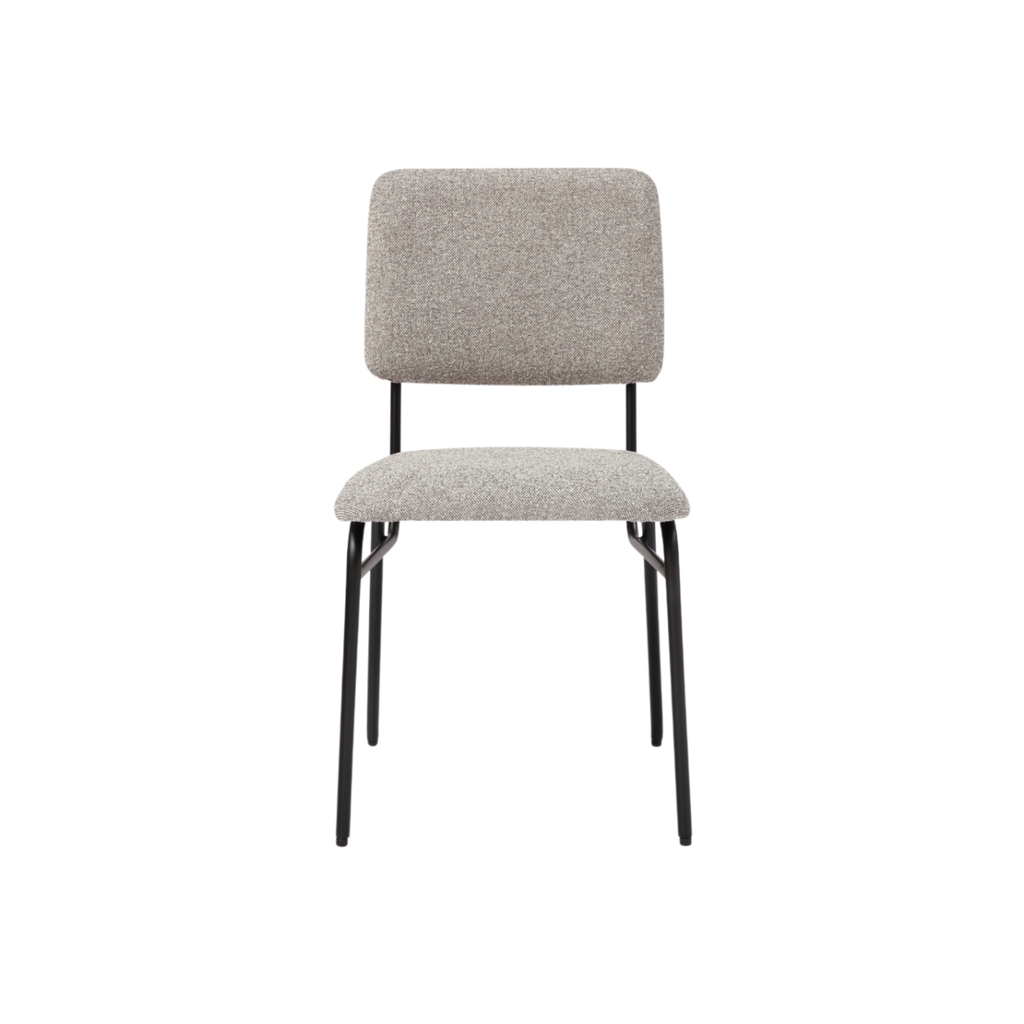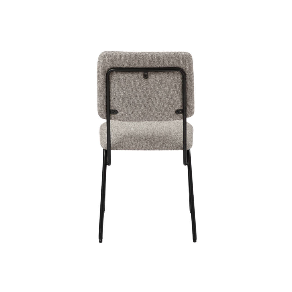 The Holly Dining Chair is a perfect combination of style, comfort and industrial aesthetics. The chair's steel coloured flat woven boucle upholstery provides a plush and inviting seating experience. The matte black coated metal legs give it a raw and brutalist look, making it a perfect addition to any modern industrial-inspired dining room.
