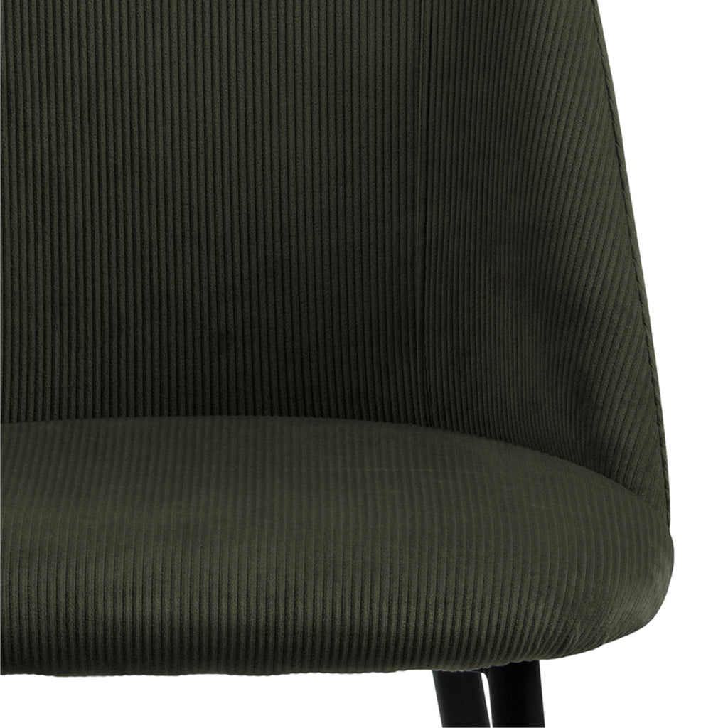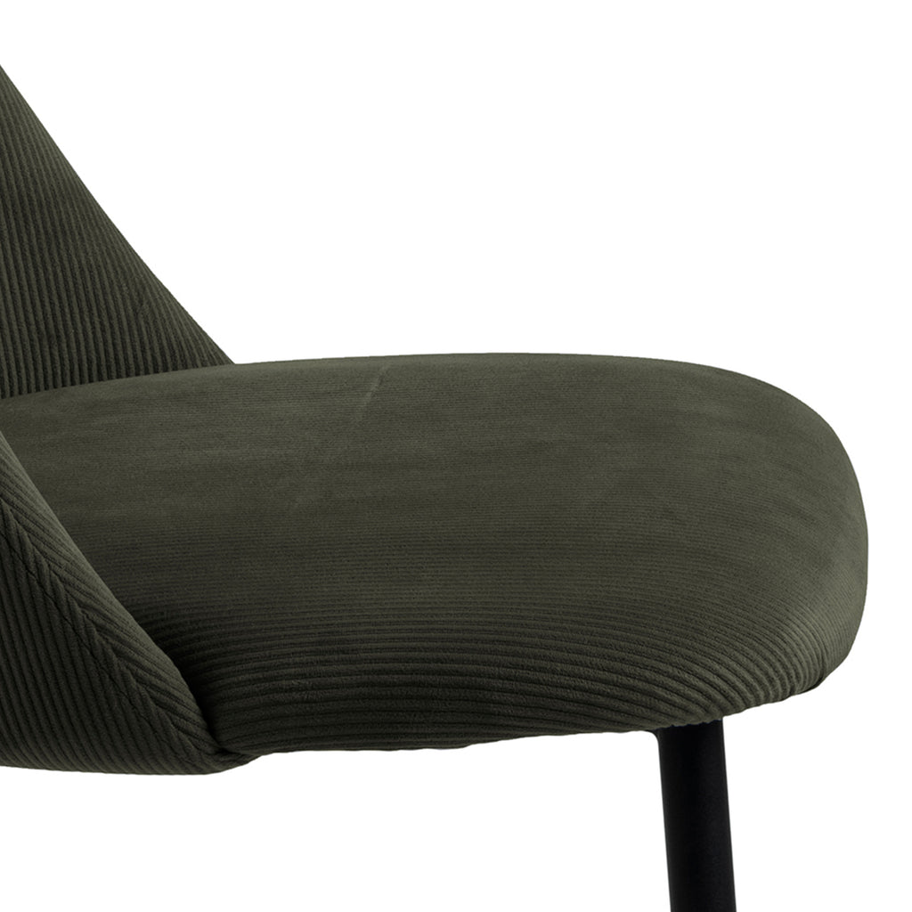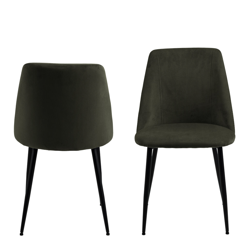 Enhance your dining ensemble with our elegant chair, upholstered in an olive green fabric. The matte black rough powder-coated steel base provides a sturdy and stylish foundation. These chairs come in a set of four, offering a cohesive look for your space.
