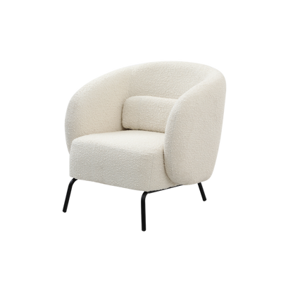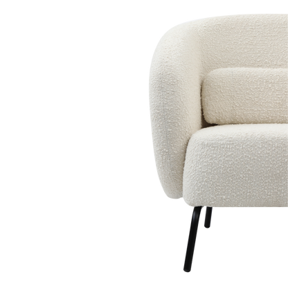 The Joey Armchair is a perfect blend of style and comfort. It boasts a contemporary curved design, made with boucle fabric that adds texture and depth to the overall look. The chair sits on sleek matte black coated legs, which complement the boucle fabric beautifully. The chair comes with a plush cushion that provides maximum comfort and support for you to relax and unwind in.