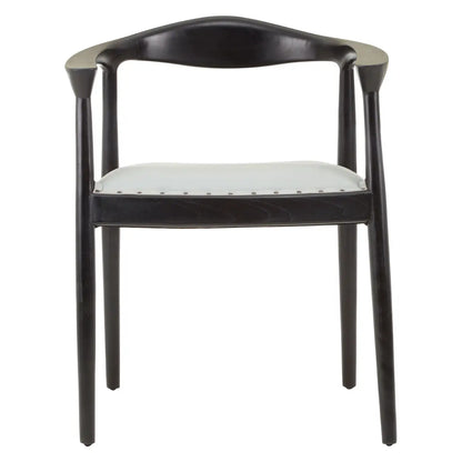Crafted with exquisite skill from teak wood, the Kendari Open Back Grey Leather Chair exudes an air of understated elegance. Its curved backrest and armrests add to its sophisticated aesthetic, while the foam padded seat and metallic stud detail trim provide a touch of luxury.