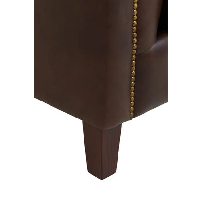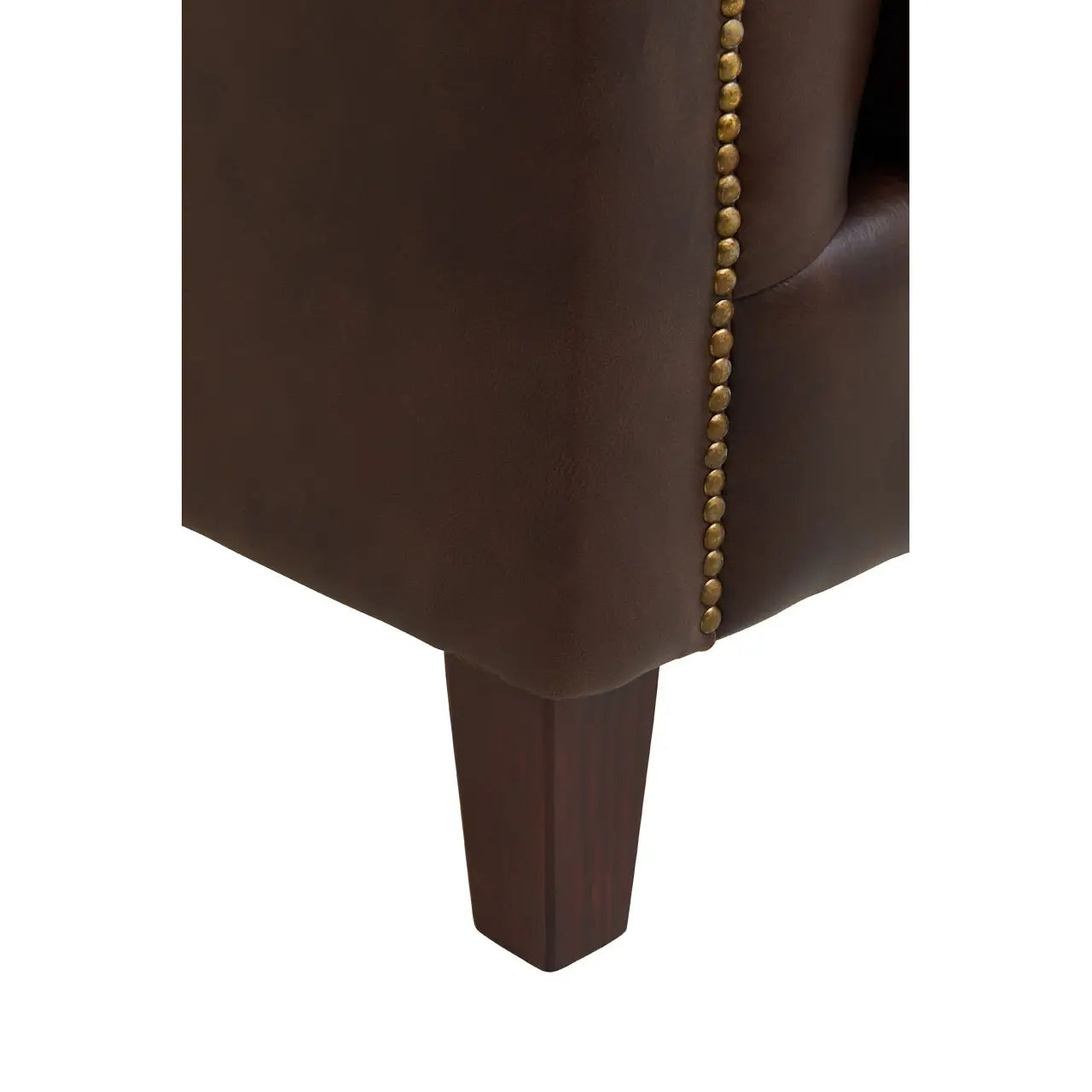 Indulge in ultimate luxury with our King Three Seater Leather Sofa. Crafted from genuine dark brown leather and supported by oak wood legs, this exquisite piece exudes elegance. With a button tufted back for a vintage touch and minimal trim for a sophisticated look, this sofa is truly a masterpiece.