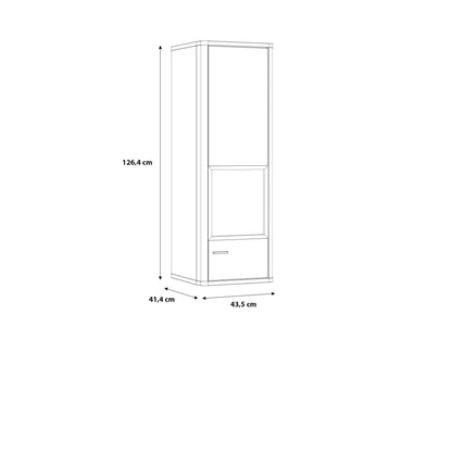 Enhance your space with the Klara Display Cabinet in Grey and Oak. Modern design, perfect for small spaces, convenient silent closing, and durable high-quality furniture board. LED Lighting included for extra style.