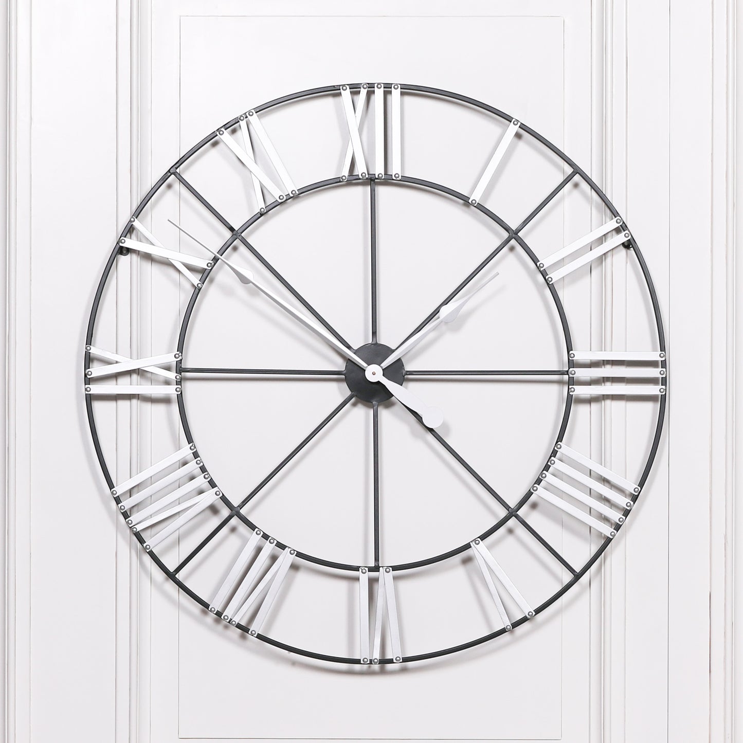 Elevate your home decor with our Large 102cm Metal Wall Clock. With sleek silver numerals and a bold size of 102cm, this clock is both functional and stylish. Keep track of time with sophistication and elegance.
