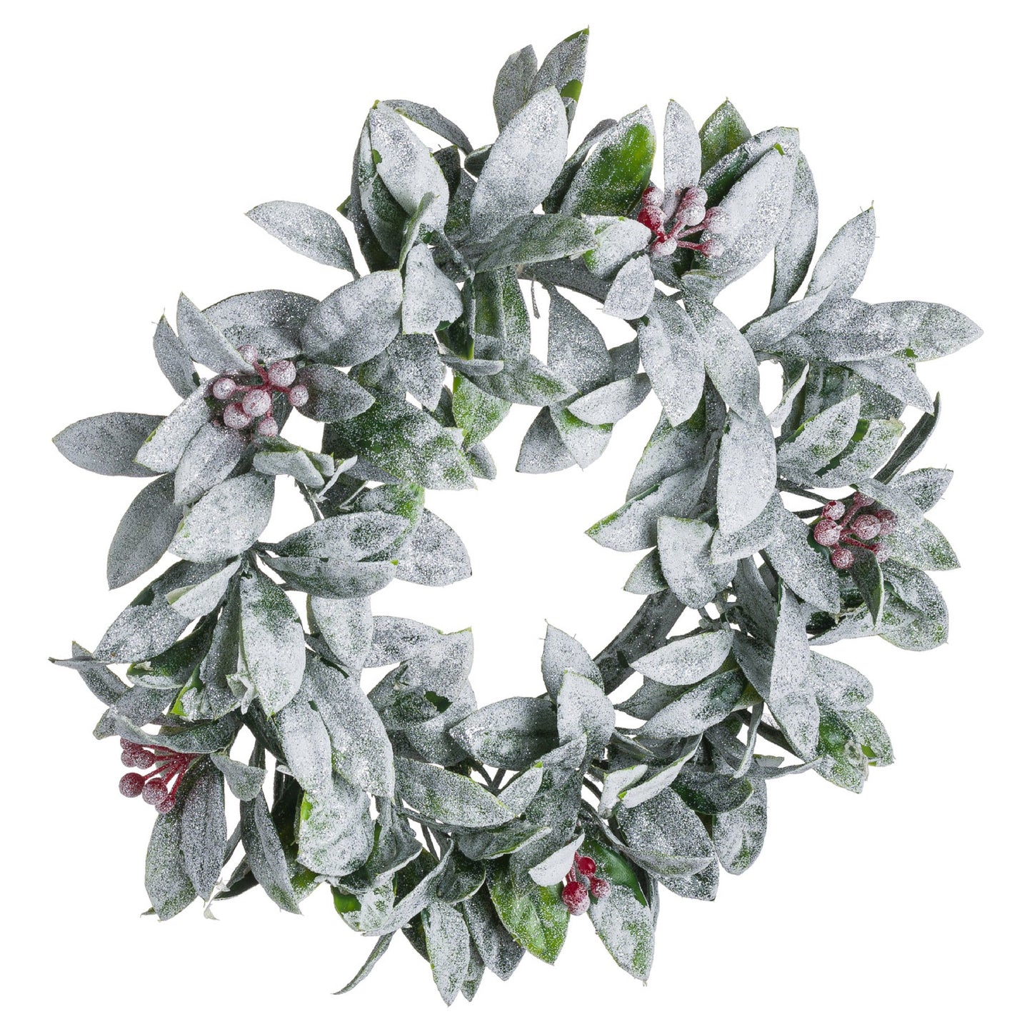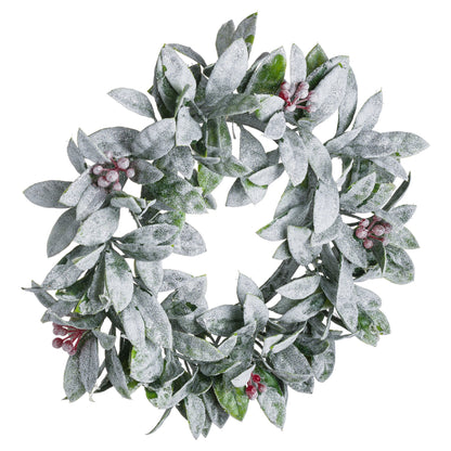 This is the Large Frosted Candle Wreath. A tasteful Christmas addition which can be used to elevate humble pillar candle into a Christmas centrepiece. Each wreath has a circle of foliage and berries delicately glistening with a white frosting.