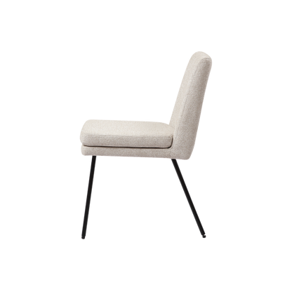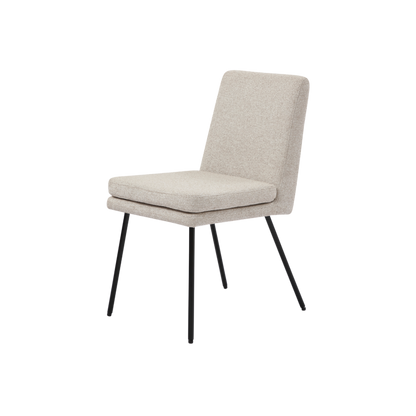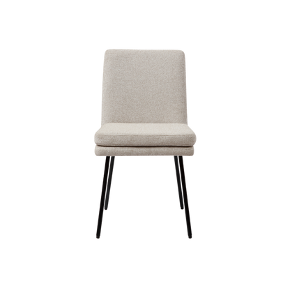 Sit comfortably at the dining room table with the Laurel Dining Chair. The soft fabric and padded cushion offer maximum comfort and aesthetic to your dining room spaces and the curved black metal legs contrasts beautifully with the fabric, this is a staple piece for any modern, minimalist property.
