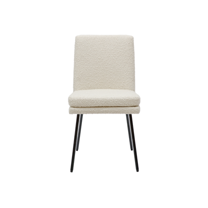 Sit comfortably at the dining room table with the Laurel Dining Chair. The soft fabric and padded cushion offer maximum comfort and aesthetic to your dining room spaces and the curved black metal legs contrasts beautifully with the fabric, this is a staple piece for any modern, minimalist property.