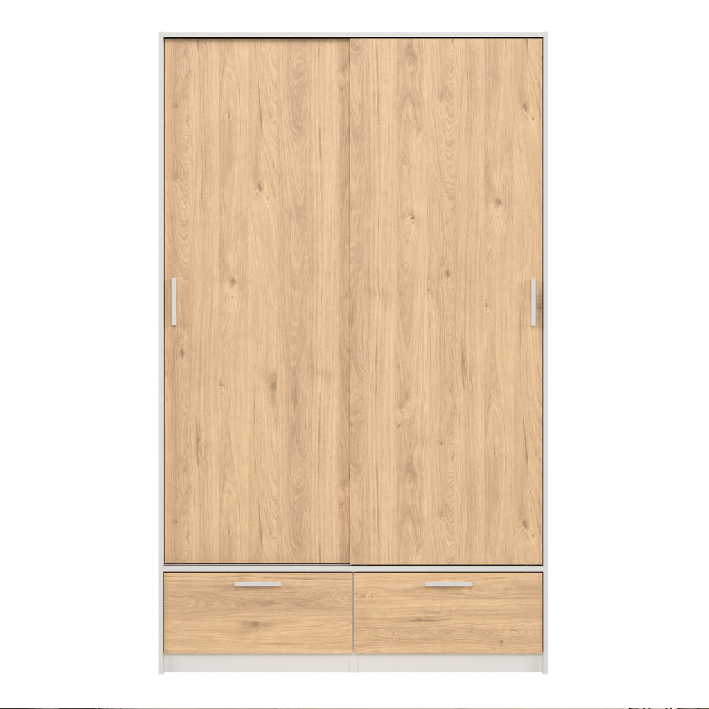 The 2 door + 2 drawer Line Wardrobe is the perfect solution for organizing your clothes in a space-saving and convenient way. It's ideal for both master bedrooms and guest rooms and its lightweight design makes it easy to move around when cleaning. The interior of this wardrobe provides ample space with multiple sections to effectively separate your outfits. It also includes compartments and drawers to store your accessories such as shoes, belts, and bags. The Line Wardrobe features a stylish and contemporary design that will complement any room decor and create a lasting impression.