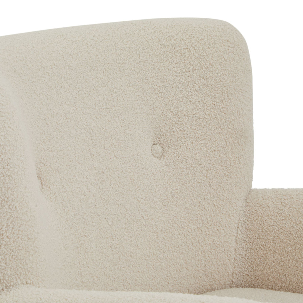 Wrapped in sumptuously soft boucle fabric, the Lingfield Armchair invites you to sink into its plush embrace and unwind in style. Its tactile appeal adds depth and visual interest to any room, while the subtle mid-tone wood stain of its legs enhances its modern aesthetic.