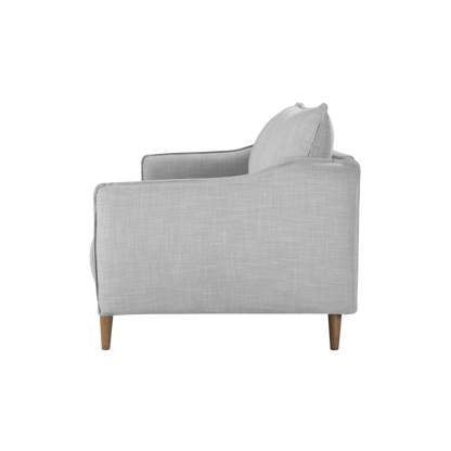 The Louie Sofa is beautifully upholstered in a silver grey linen fabric, with its curvaceous arms and unique ash grey frame giving it a fresh and contemporary look. Its subtle tones coordinate perfectly with any decor, making this sofa a must have.
