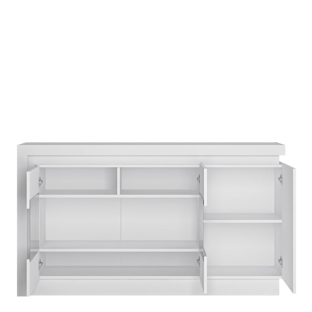 This could be the signature piece in your living or dining area. Perfect for showcasing your most prized photographs or ornaments. Plenty of space is included behind the 3 doors. Includes a concealed lighting arrangement. The designers of this range have combined several rectangular shapes and produced a modern collection in 3 different colourways, Riviera light oak and white high gloss fronts, contrasting greys and white and gloss white.