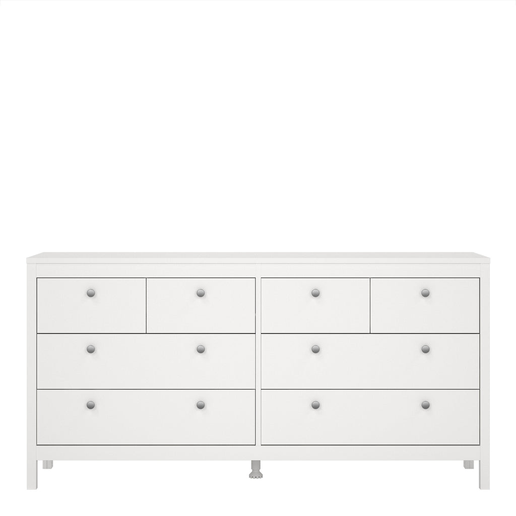 A contemporary chest of drawers in an elegant design complete with a simple metal handle, also available in contrasting matt black
