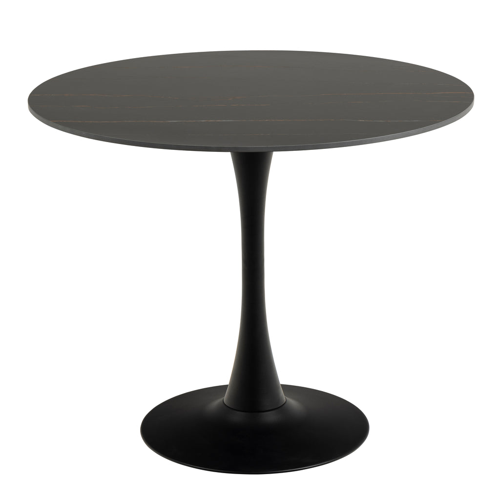 Discover the essence of chic design with our round dining table, featuring a sophisticated matt black ceramic top paired with a bold, matte-finished steel base. Its contemporary silhouette is sure to make a statement in any dining space.