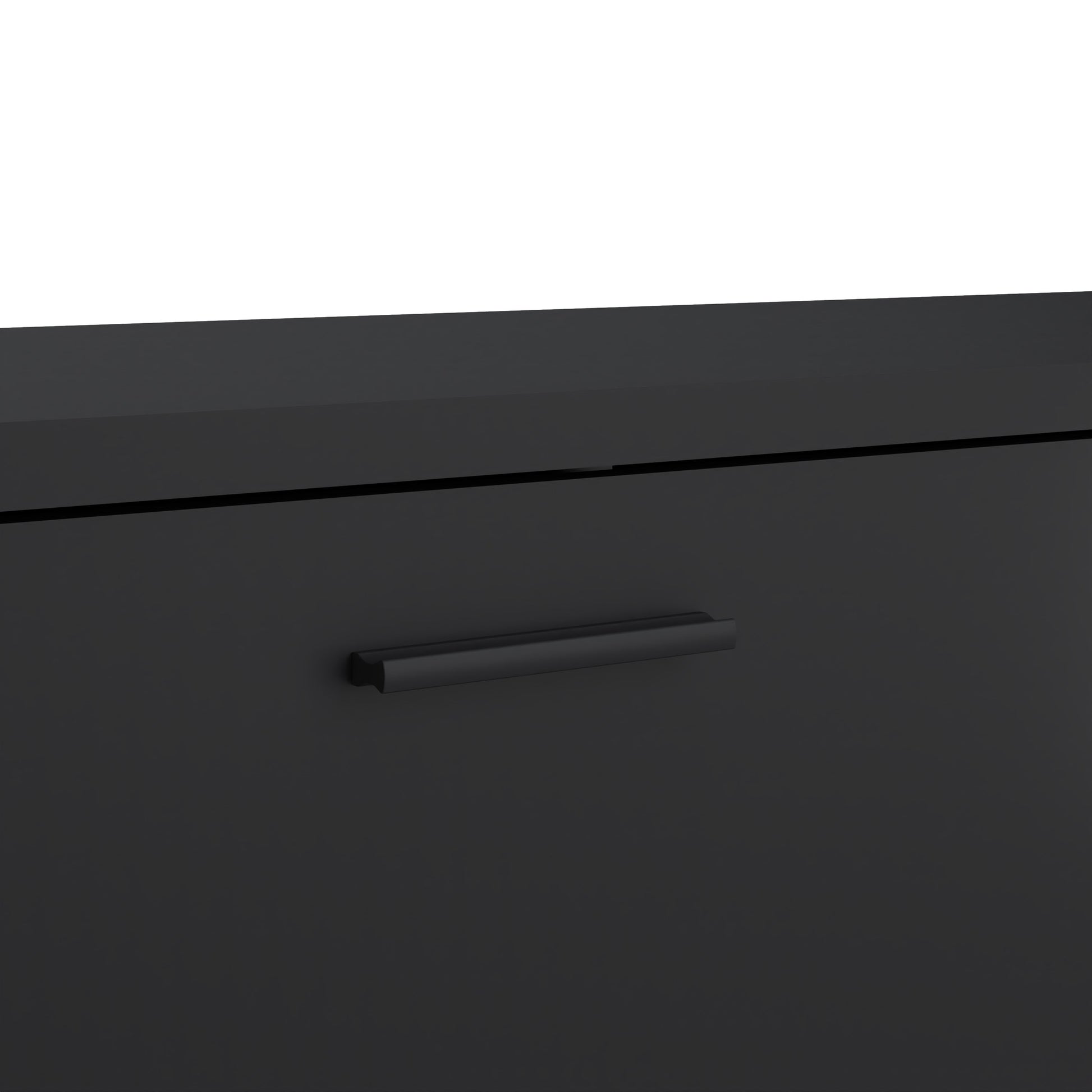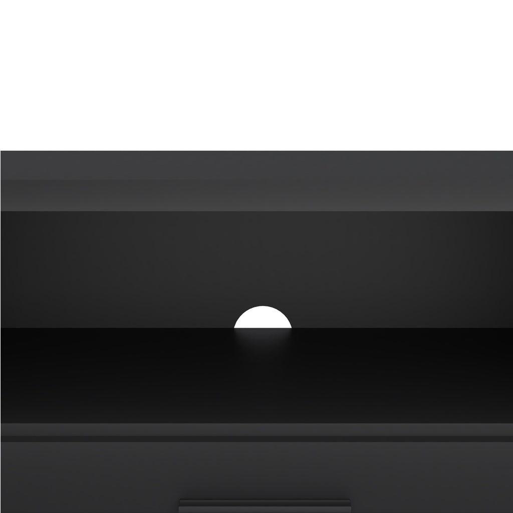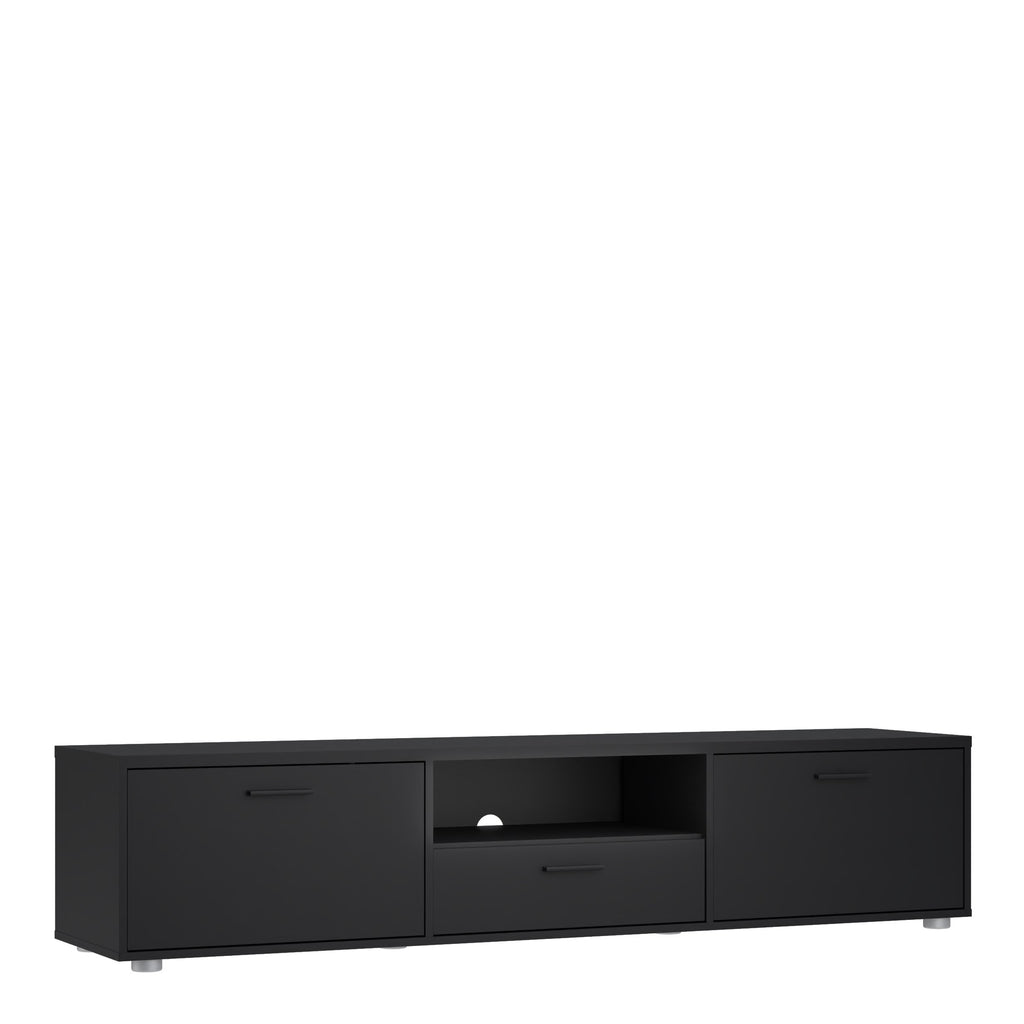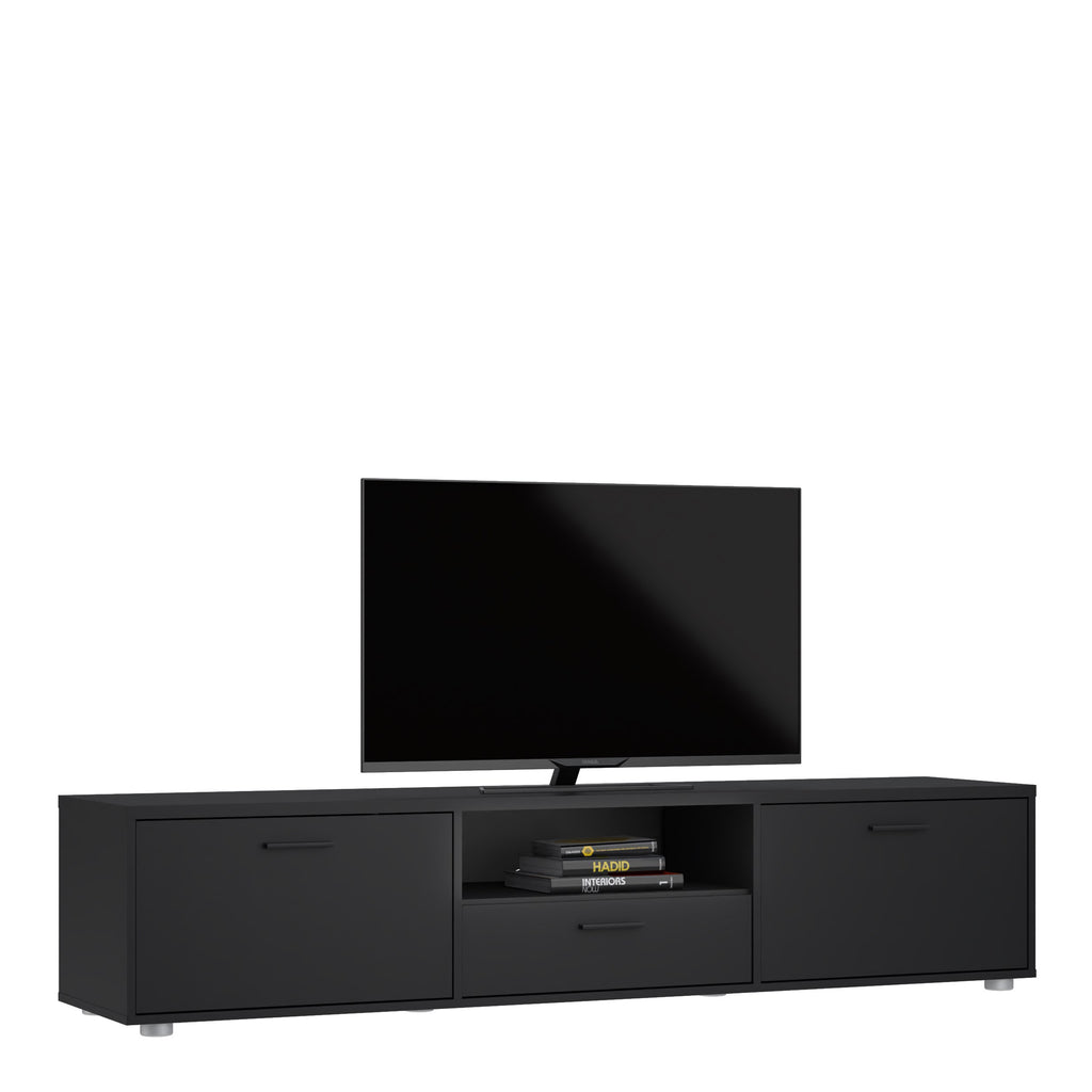 This Media TV unit is traditional Danish design and produced with an easy to clean foil surface. Made and manufactured in Denmark. It features a simple, low-profile, multifunctional design to keep all your media components organized. The simple yet appealing includes three media compartments and one drawer including one shelf behind each door for additional storage.