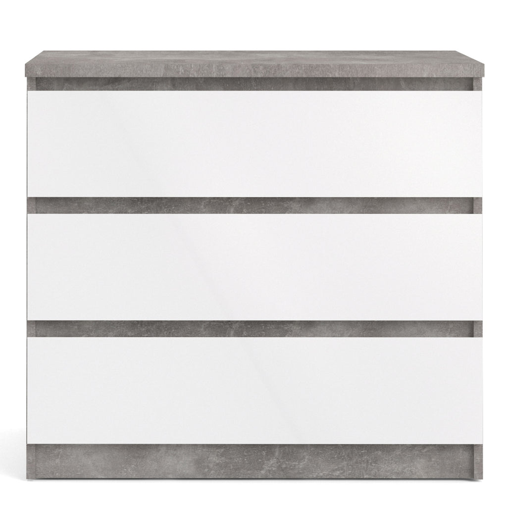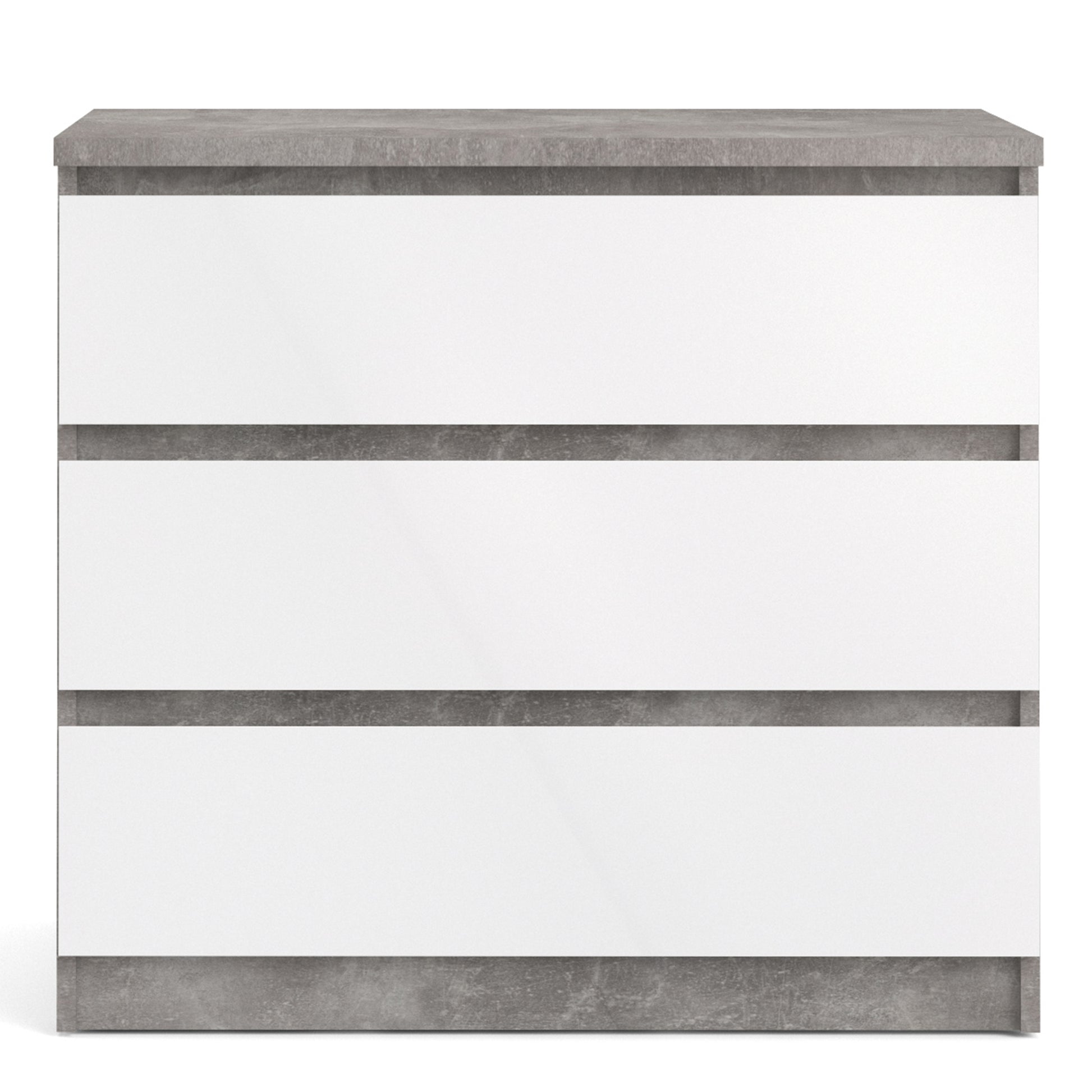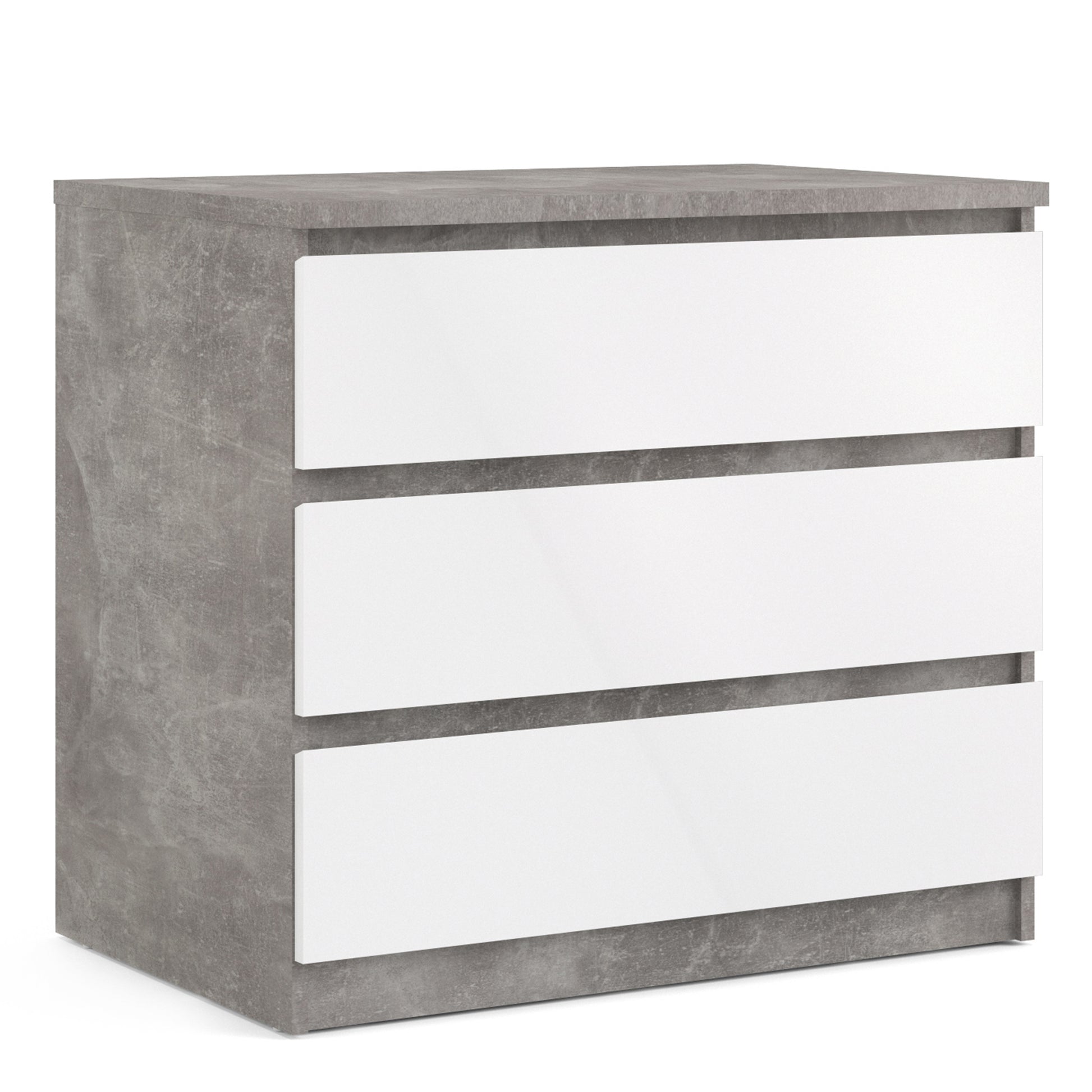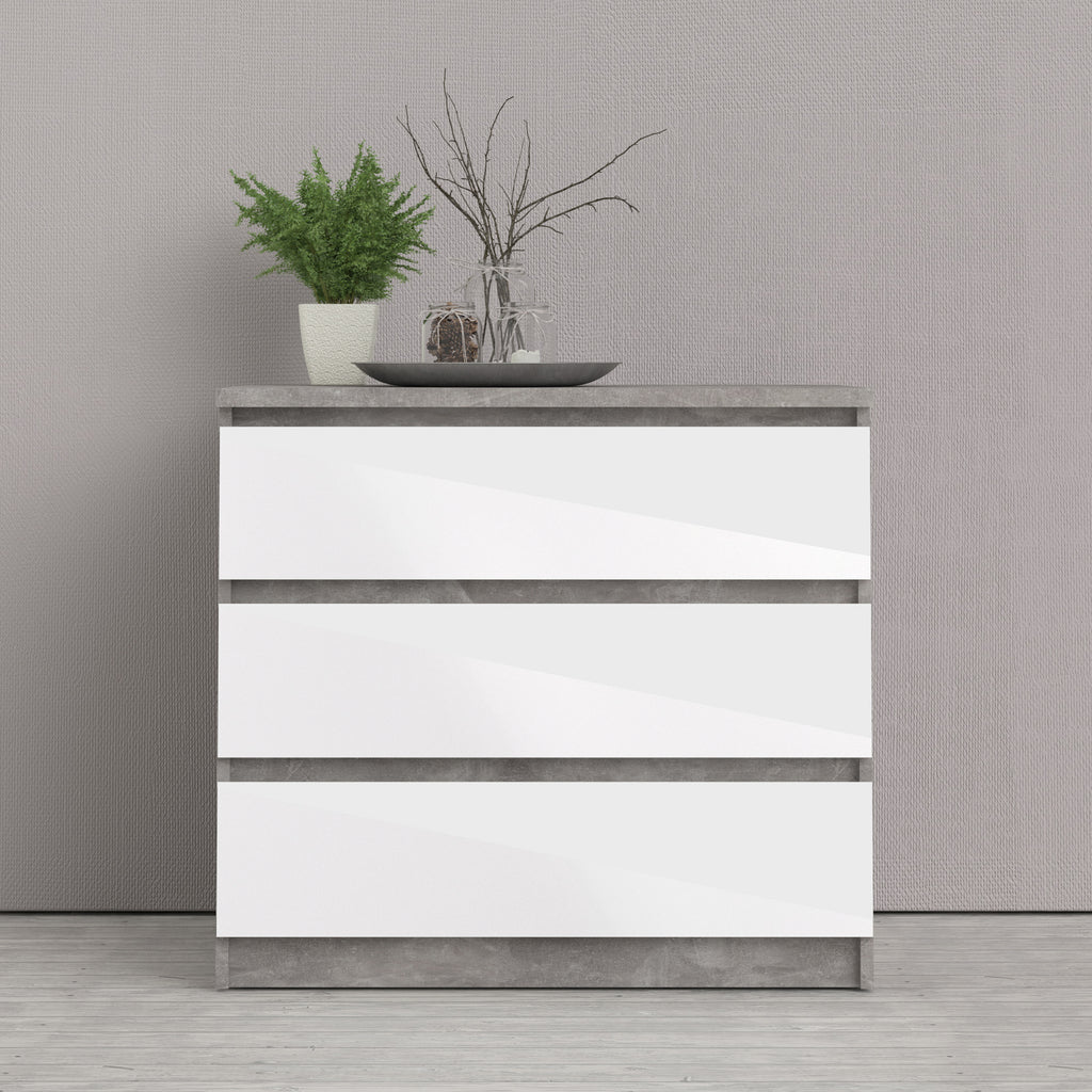 Naia Chest of 3 Drawers in Concrete and White High Gloss