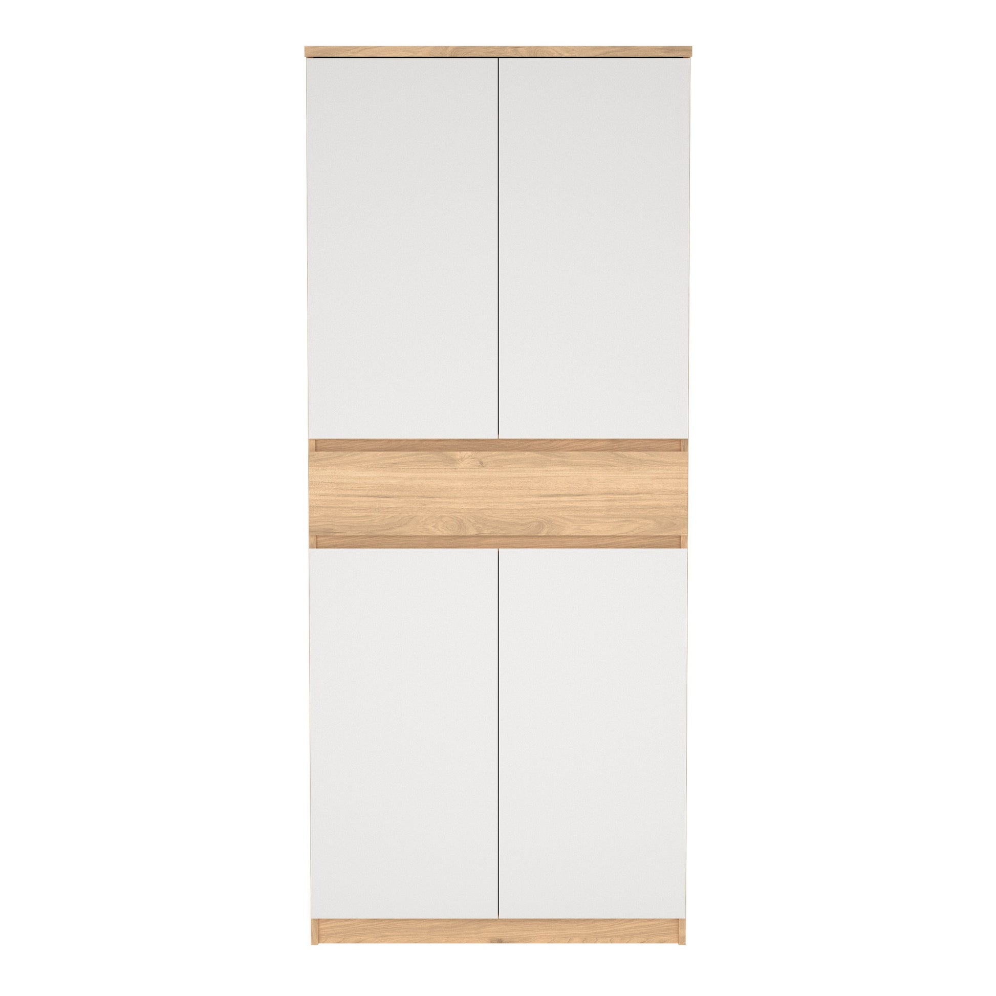 Discover the perfect storage solution for your beloved shoe collection with the Naia Shoe Cabinet. With its sleek design and clever functionality, this cabinet is designed to keep your shoes organized and your space clutter-free. Featuring four spacious doors and a convenient drawer, it effortlessly provides ample storage space for all your favourite pairs. The beautiful combination of Jackson Hickory Oak and White finishes adds a touch of elegance and versatility to elevate your home decor. Embrace organization and style with the Naia Shoe Cabinet, a perfect addition to your entryway or bedroom.
