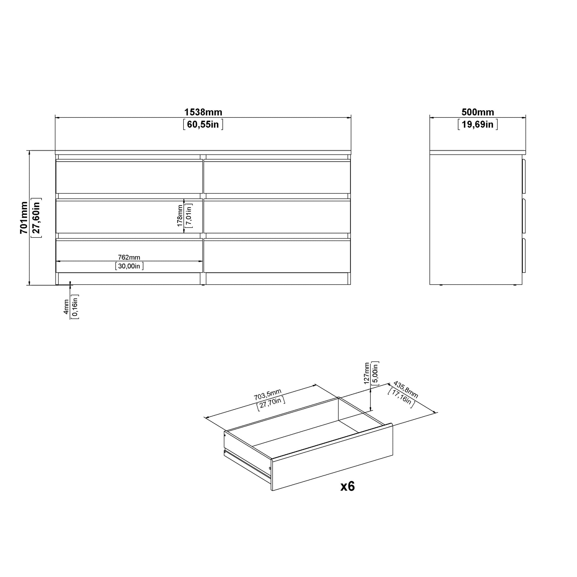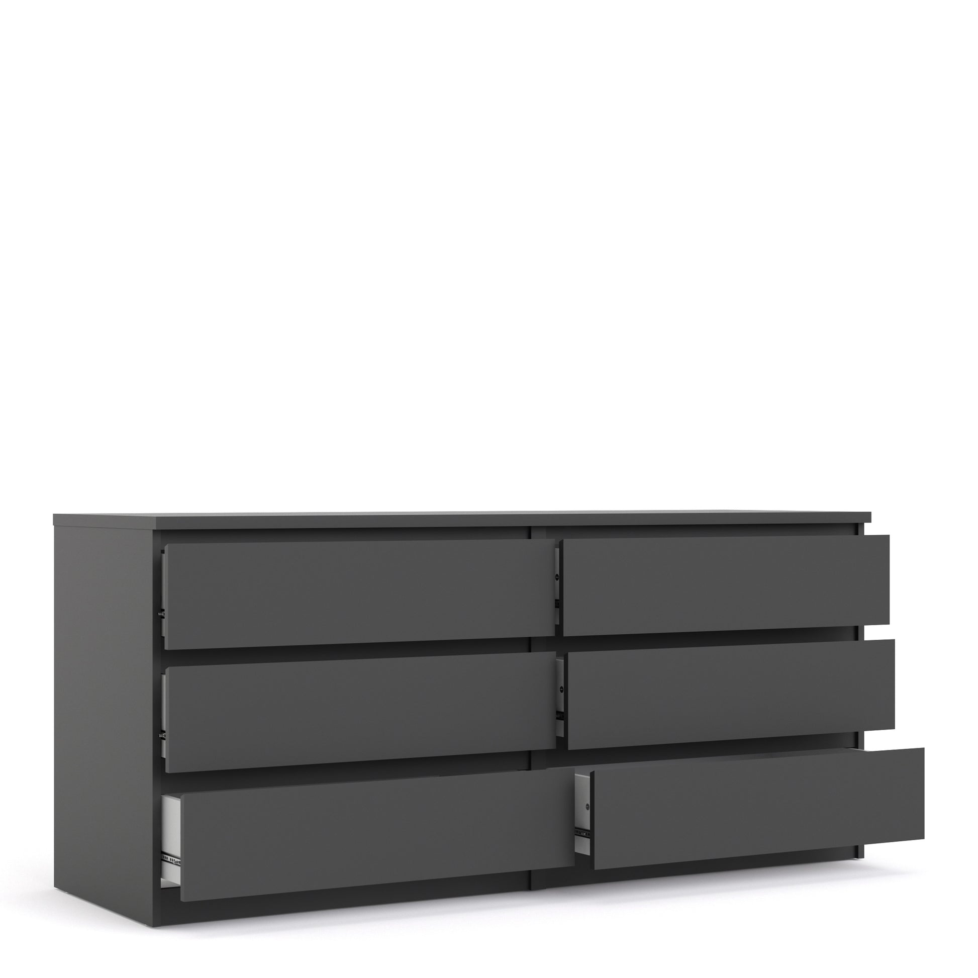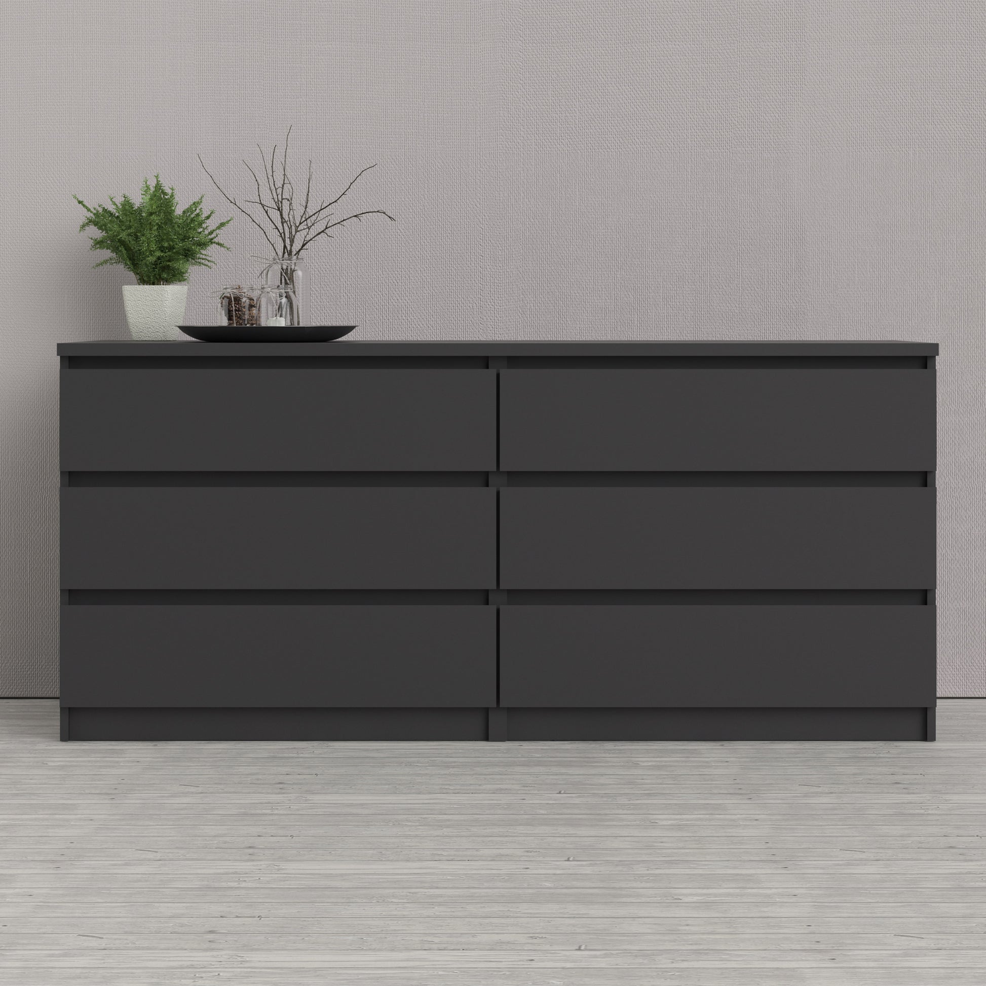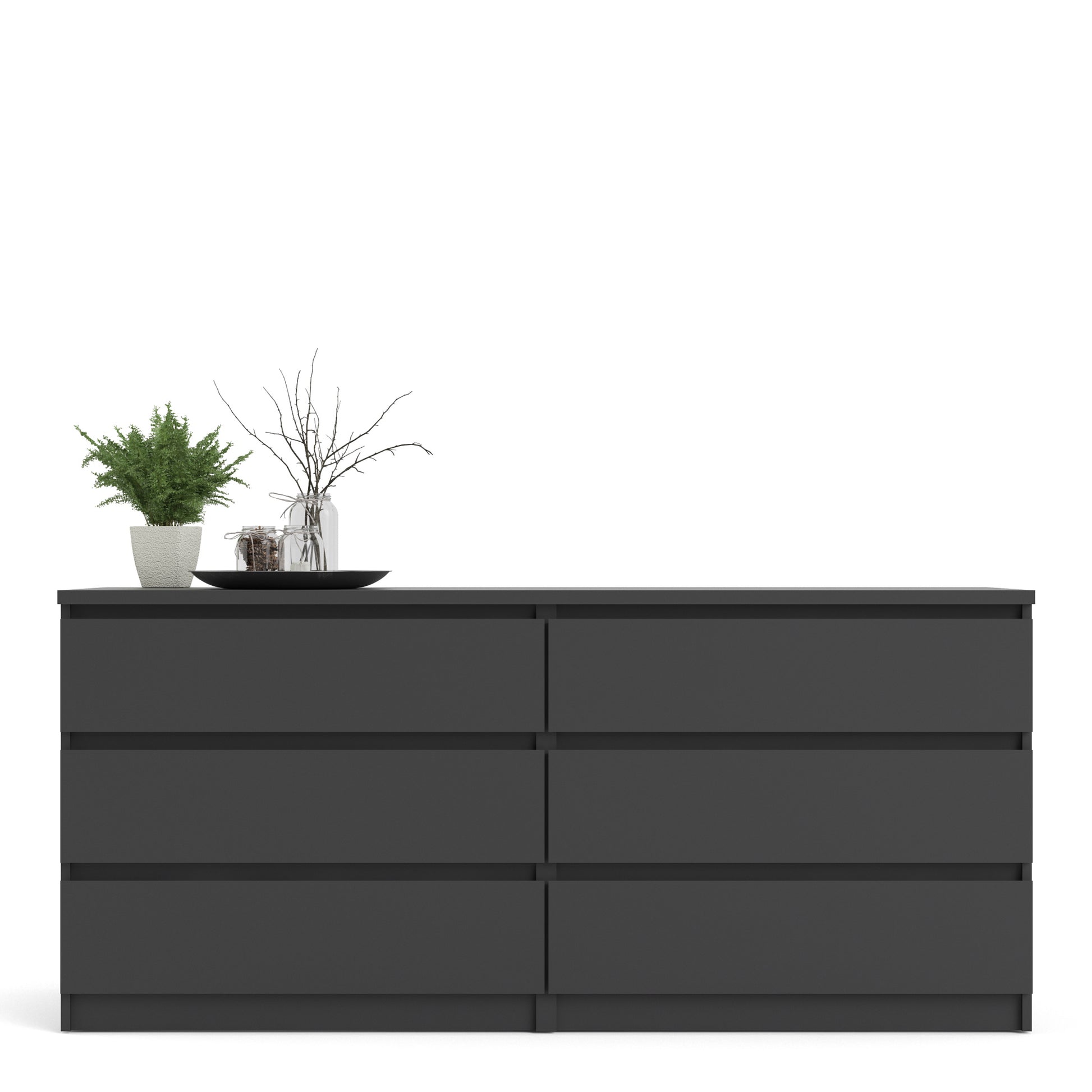 Naia Wide Chest of 6 Drawers (3+3) in Black Matt