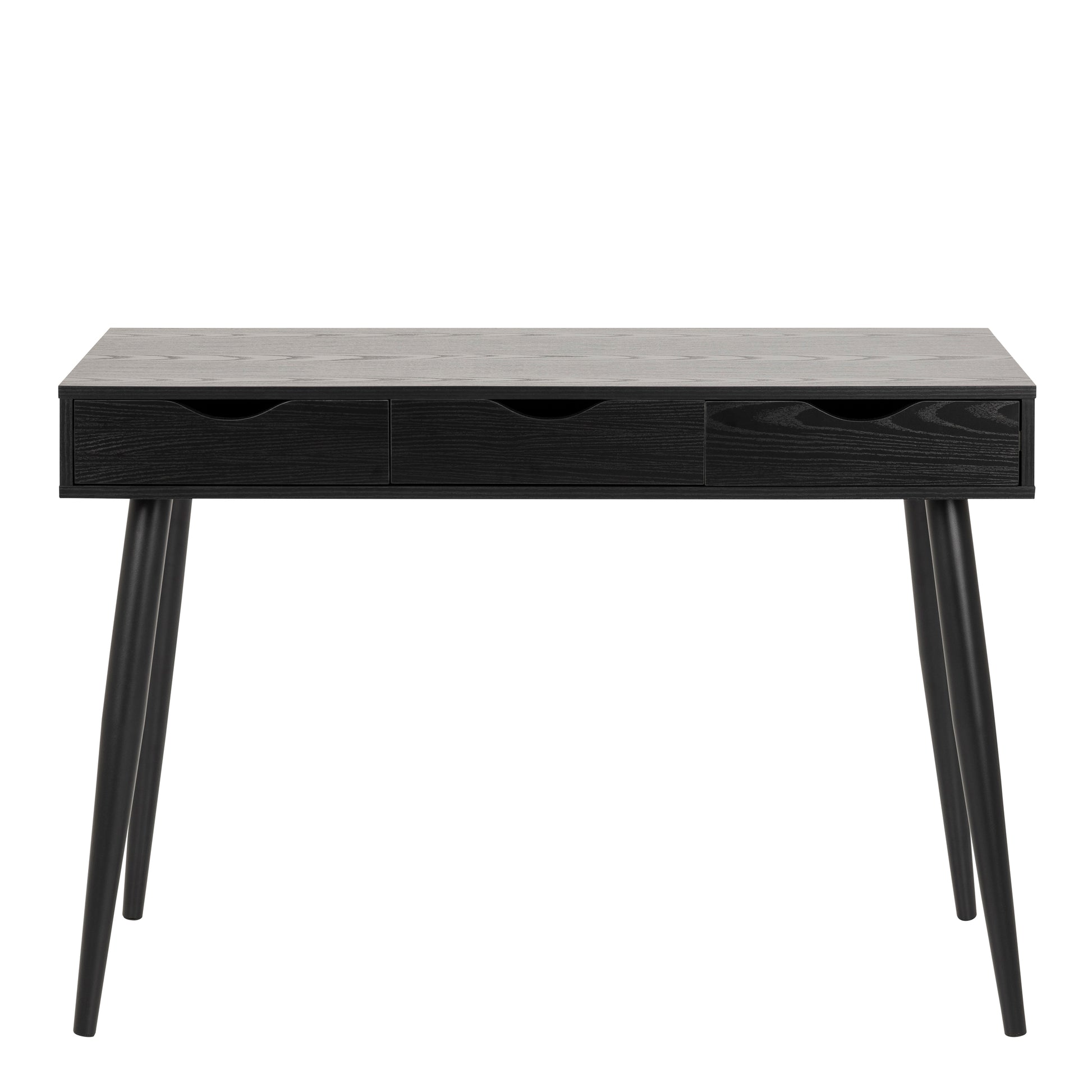 This rectangular office desk is a fusion of style and functionality. Its ash black top and three drawers, paired with a base of matt black rough powder-coated steel, exude modern sophistication. With metal runners for added durability, this desk is designed to enhance your workspace with a sleek aesthetic.