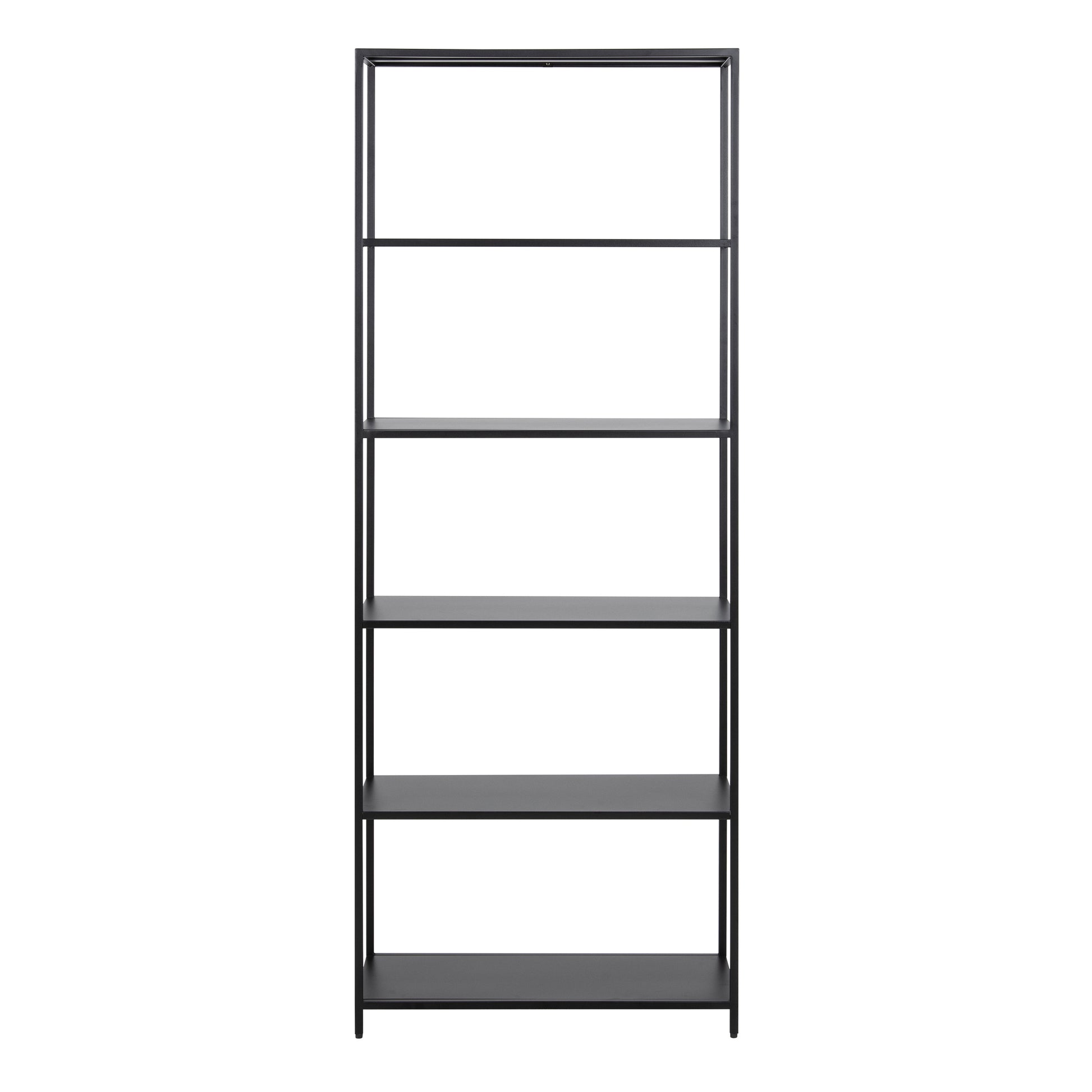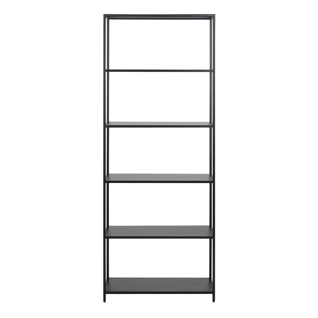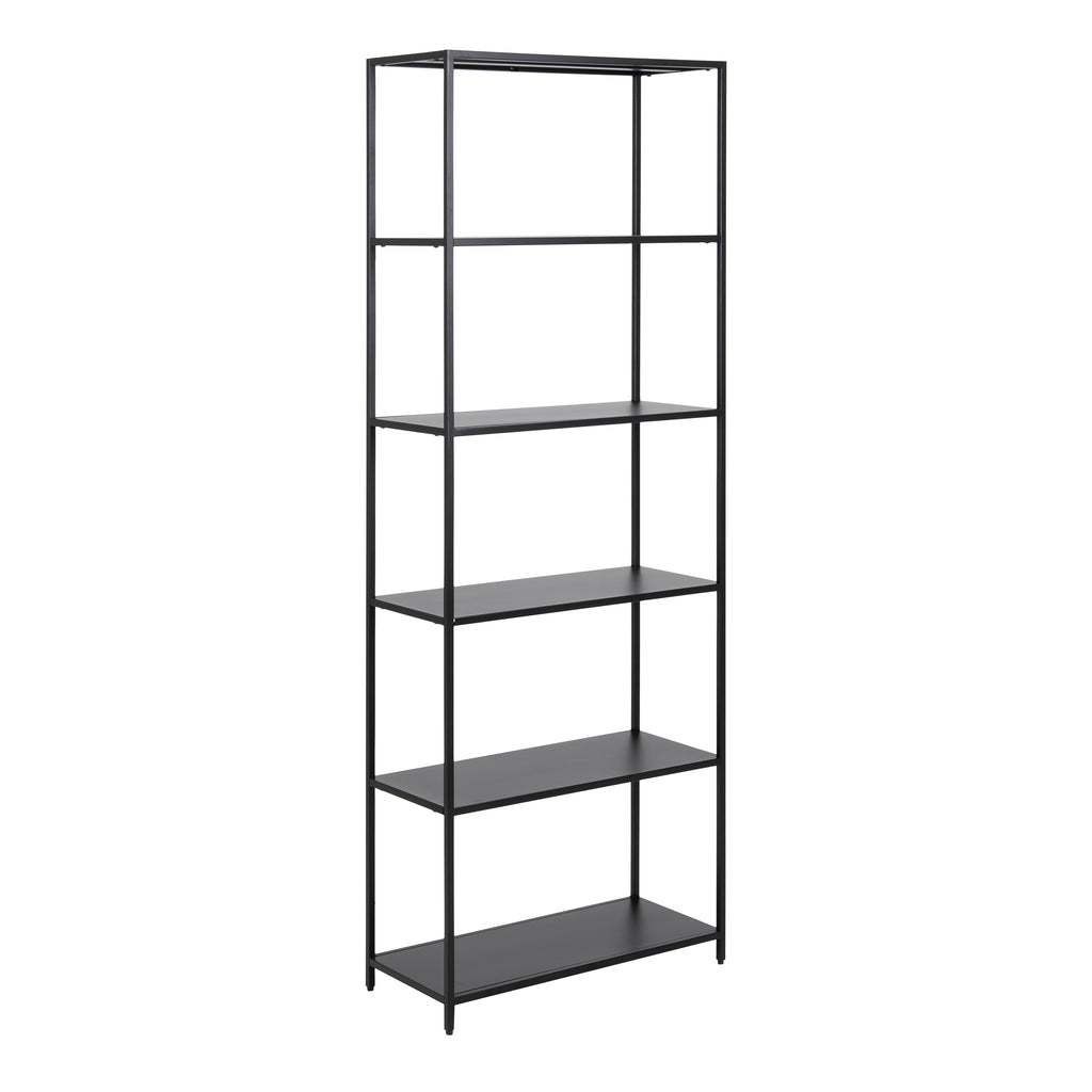 Crafted with a frame, 5 shelves, and base in matt black rough powder-coated steel, this bookcase exudes industrial charm. It offers ample storage space while adding a contemporary touch to your home décor.