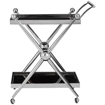 The Novo 2 Tier Silver And Cross Design Trolley features elegant trays made of sleek, tempered glass and a cool metallic frame. The modern, contemporary design is enhanced by a stylish metal cross motif on each side.