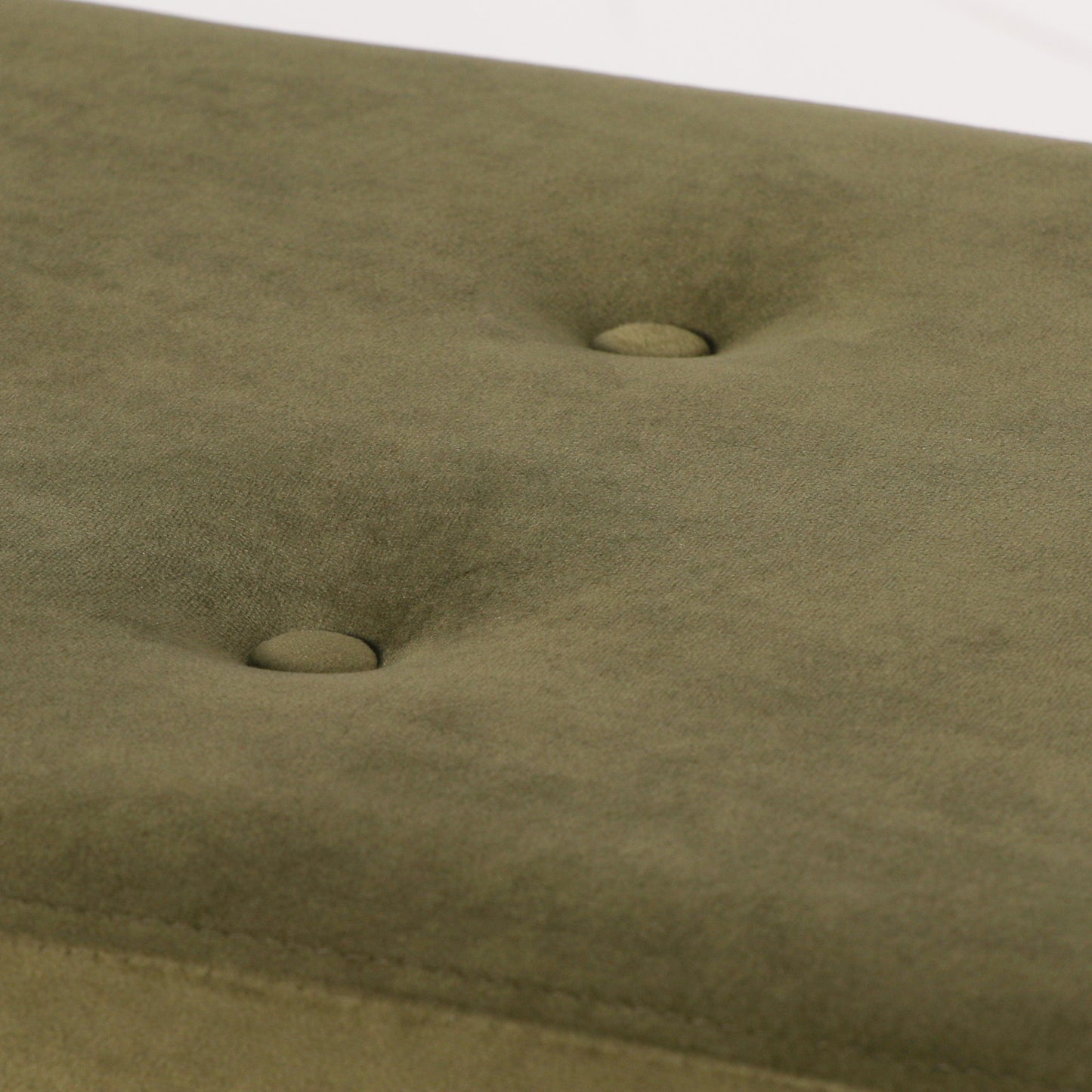 Elevate your living space with our Olive Green Buttoned Ottoman Stool. This luxurious piece features a classic olive green color and elegant button detailing, adding a touch of sophistication and comfort to any room. Perfect for resting your feet after a long day or as additional seating for guests.