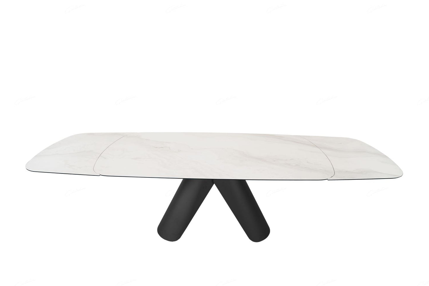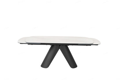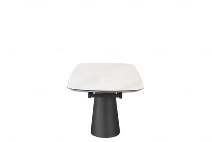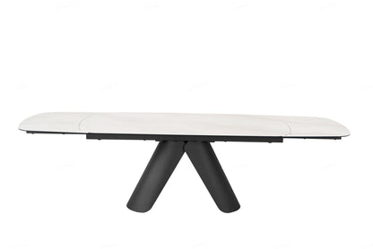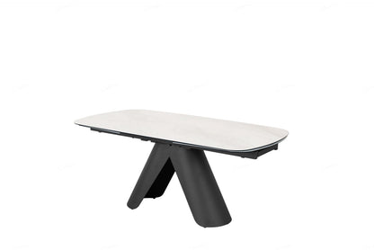 Elevate your dining experience with the Opulento Extending Dining Table. Crafted with a sleek matt white finish and luxurious cosmic grey vein ceramic, this table effortlessly combines style and functionality. Expand it to accommodate extra guests and enjoy the ultimate in elegant dining.