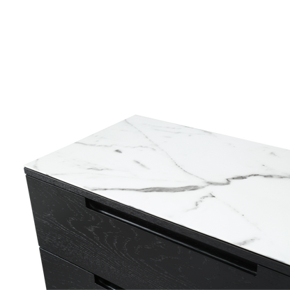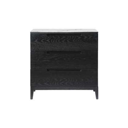 The Orchid Marble Chest is beautiful and luxurious in colour, with a detailed marble top. Consisting of three large drawers with stylish cut out handles and a robust black oak frame, this chest works wonderfully in contemporary spaces. Its smooth and detailed sleek marble top adds a sense of luxury to your bedroom.