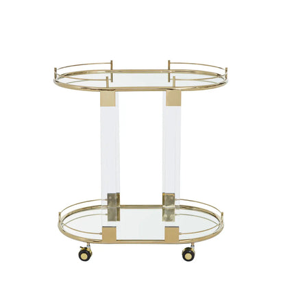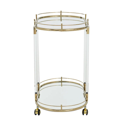 Made from a combination of acrylic and stainless steel with a luxurious gold coating, this sophisticated and functional trolley features a reflective glass shelf and serving tray. Perfect for serving a selection of cocktails, afternoon tea, and other refreshments.