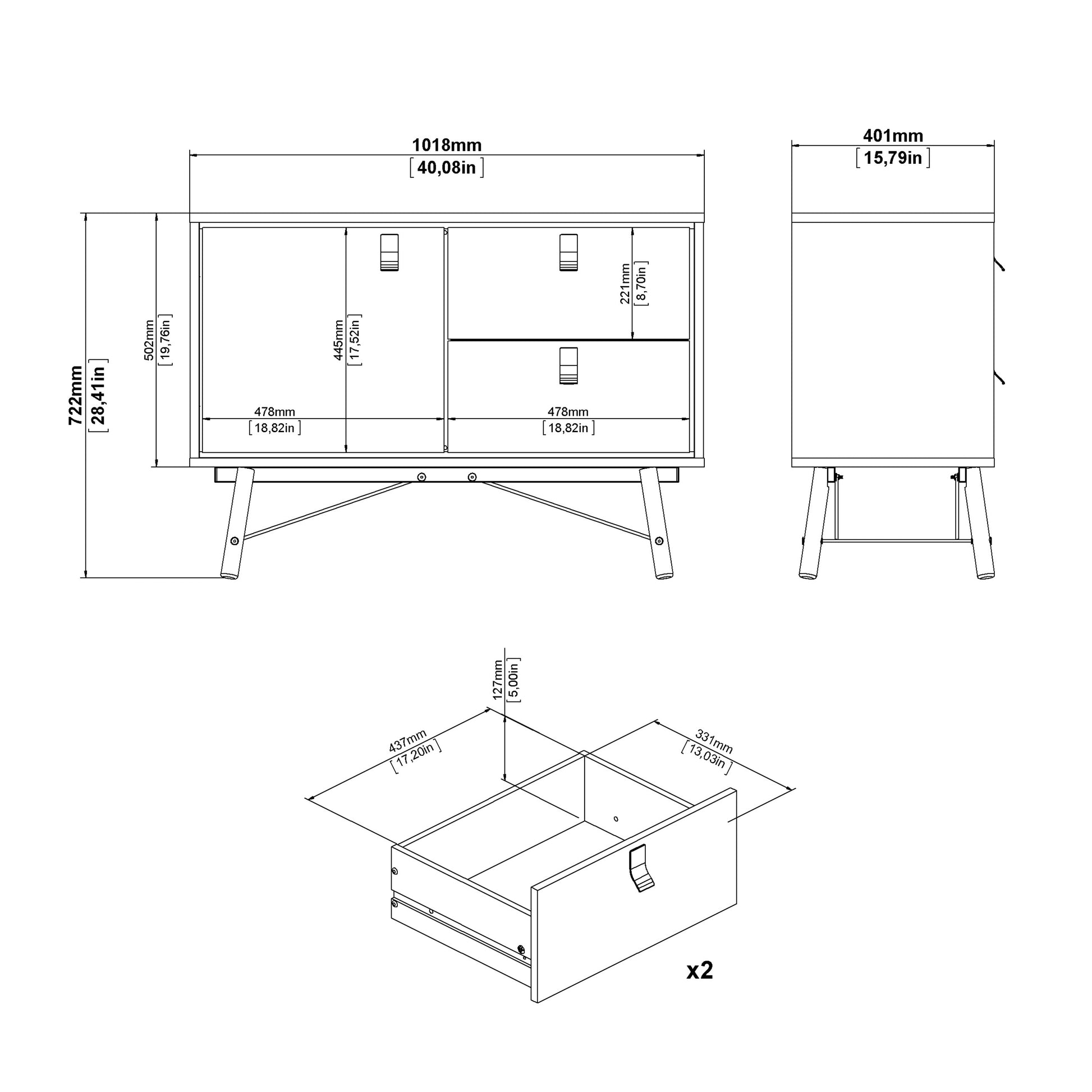 Ry Sideboard with 1 Door 2 Drawers in Matt White