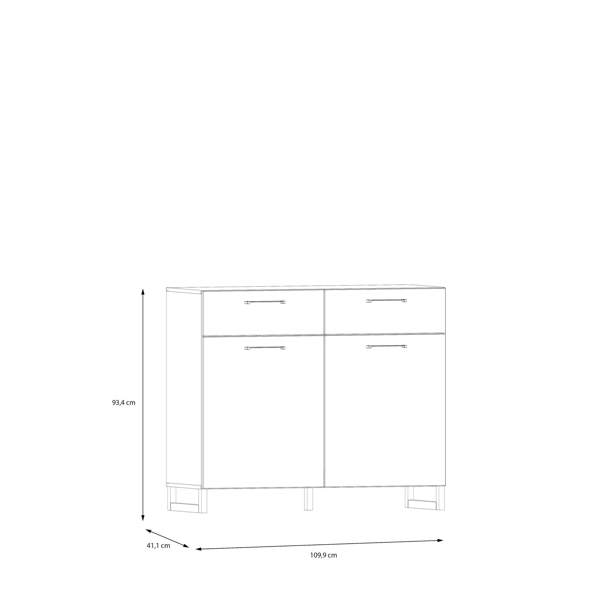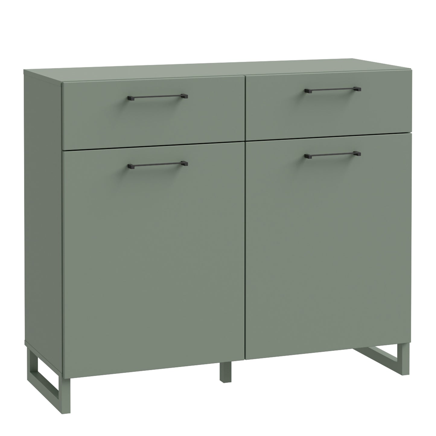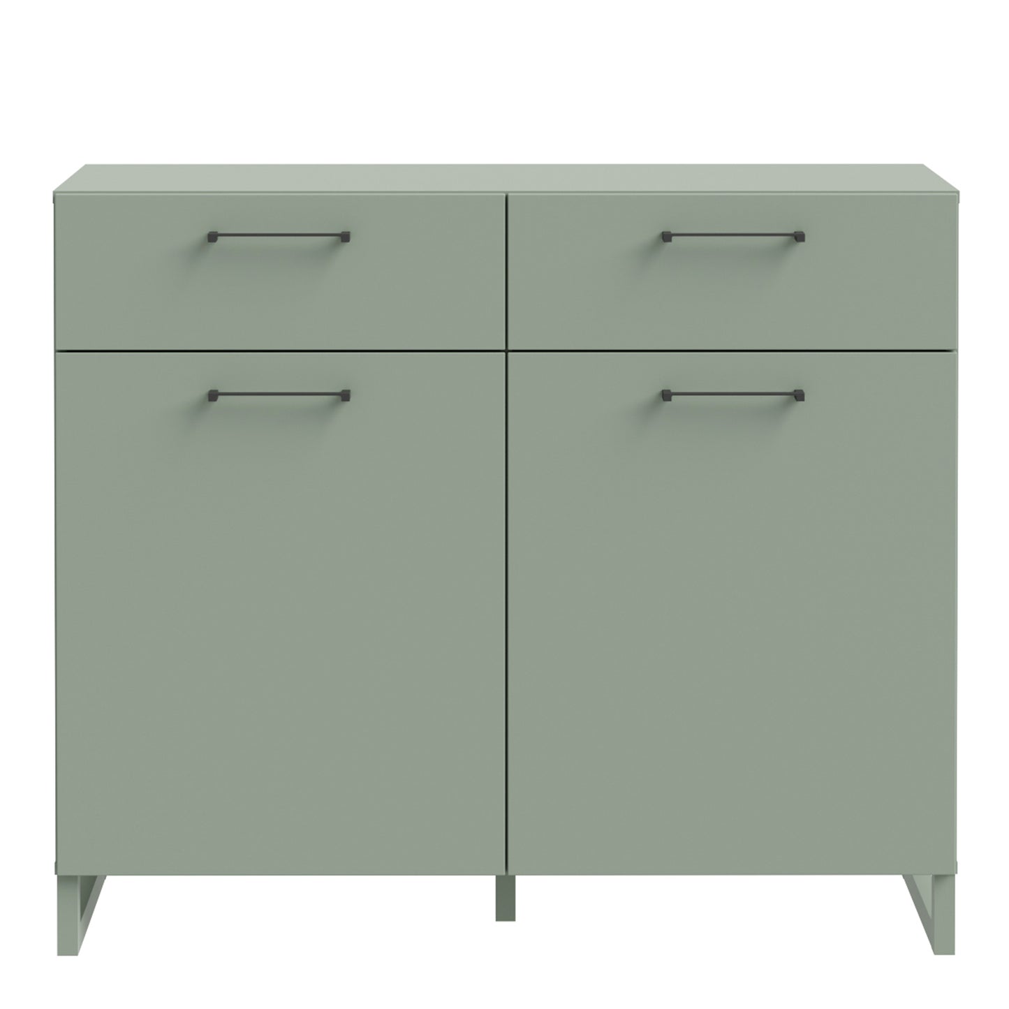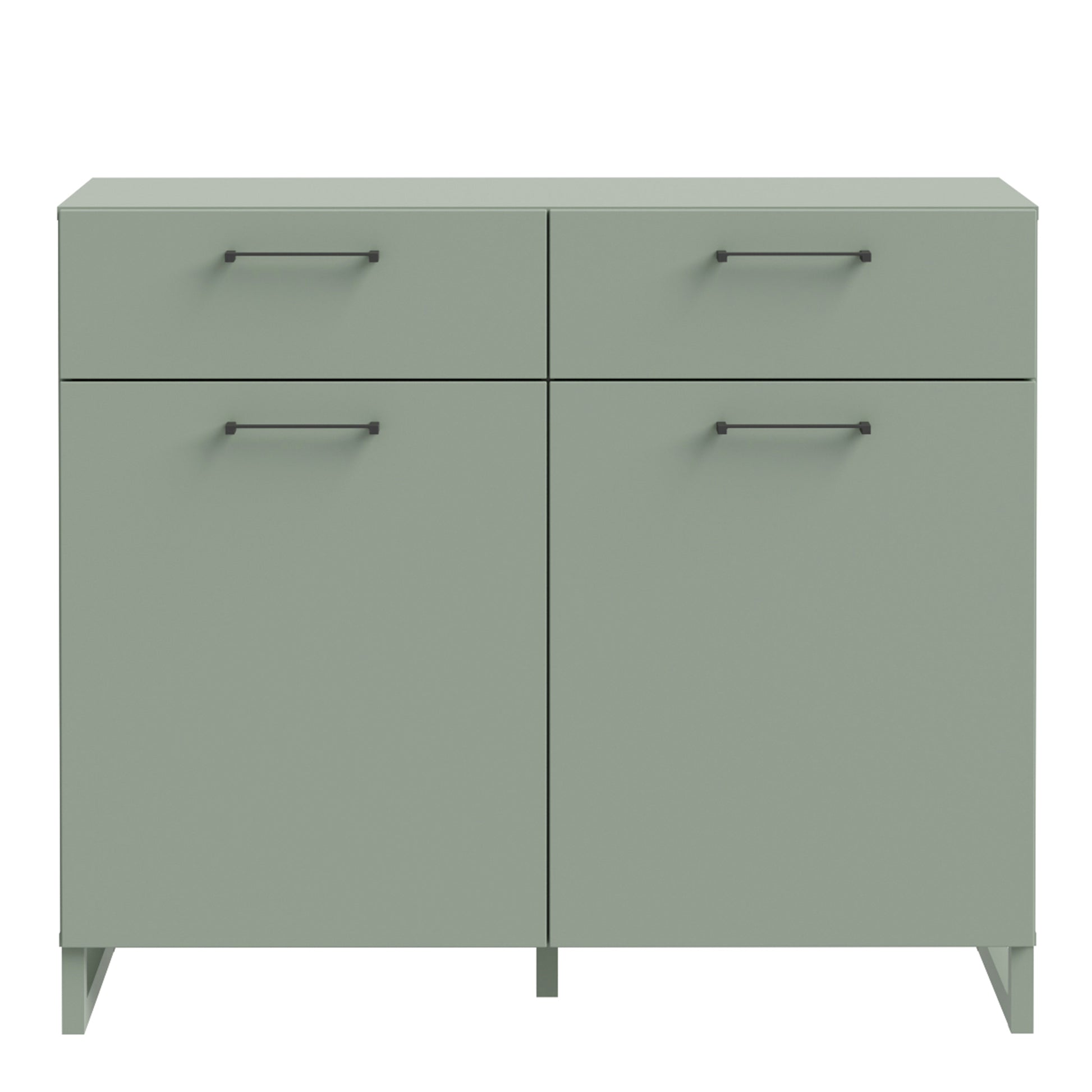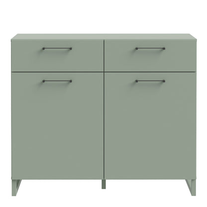 Enhance your home with the Sali 2 Door 2 Drawer Chest in Sage Green. Modern design, sage finish, solid black metal handles, durable ABS edging, and a soft-closing system for added comfort.