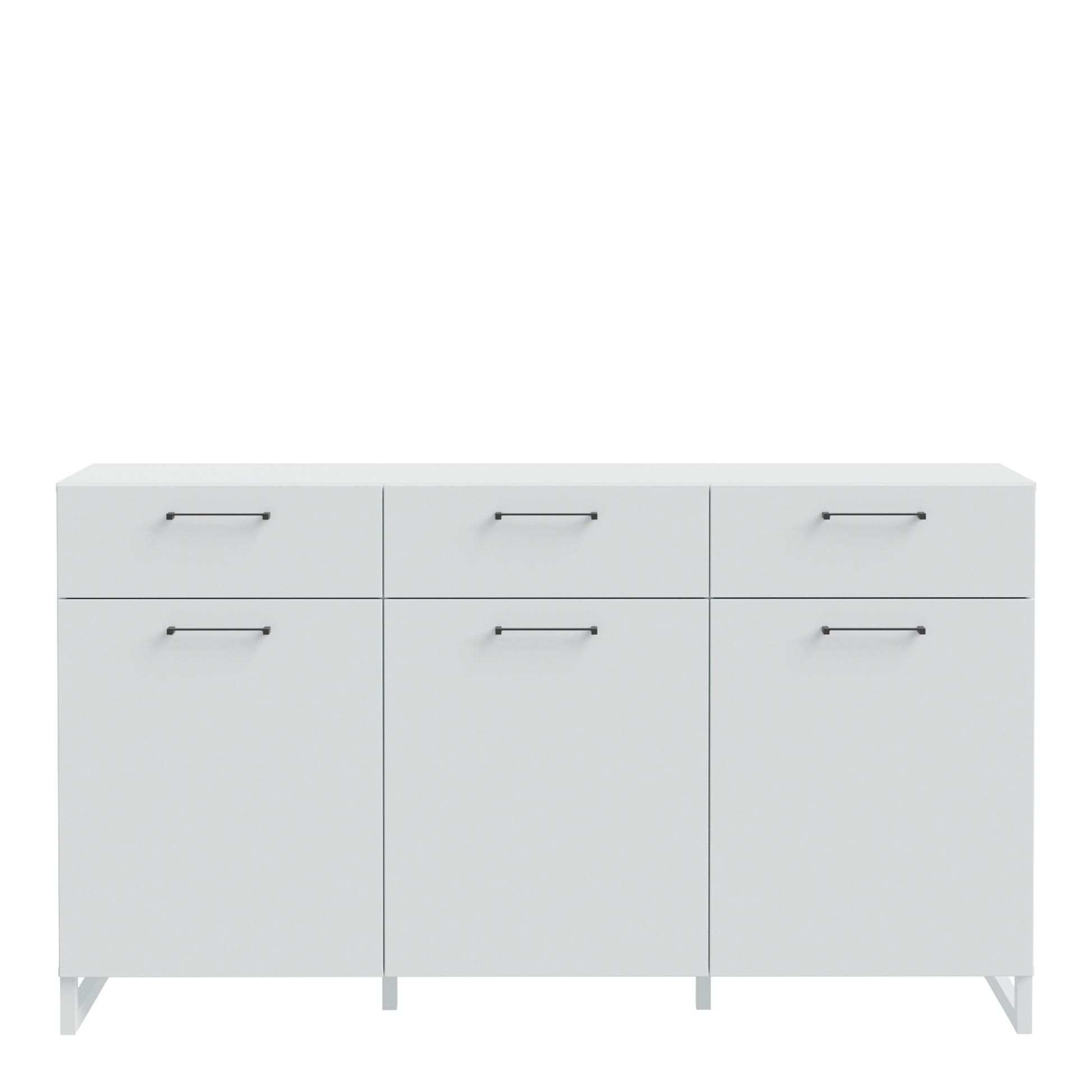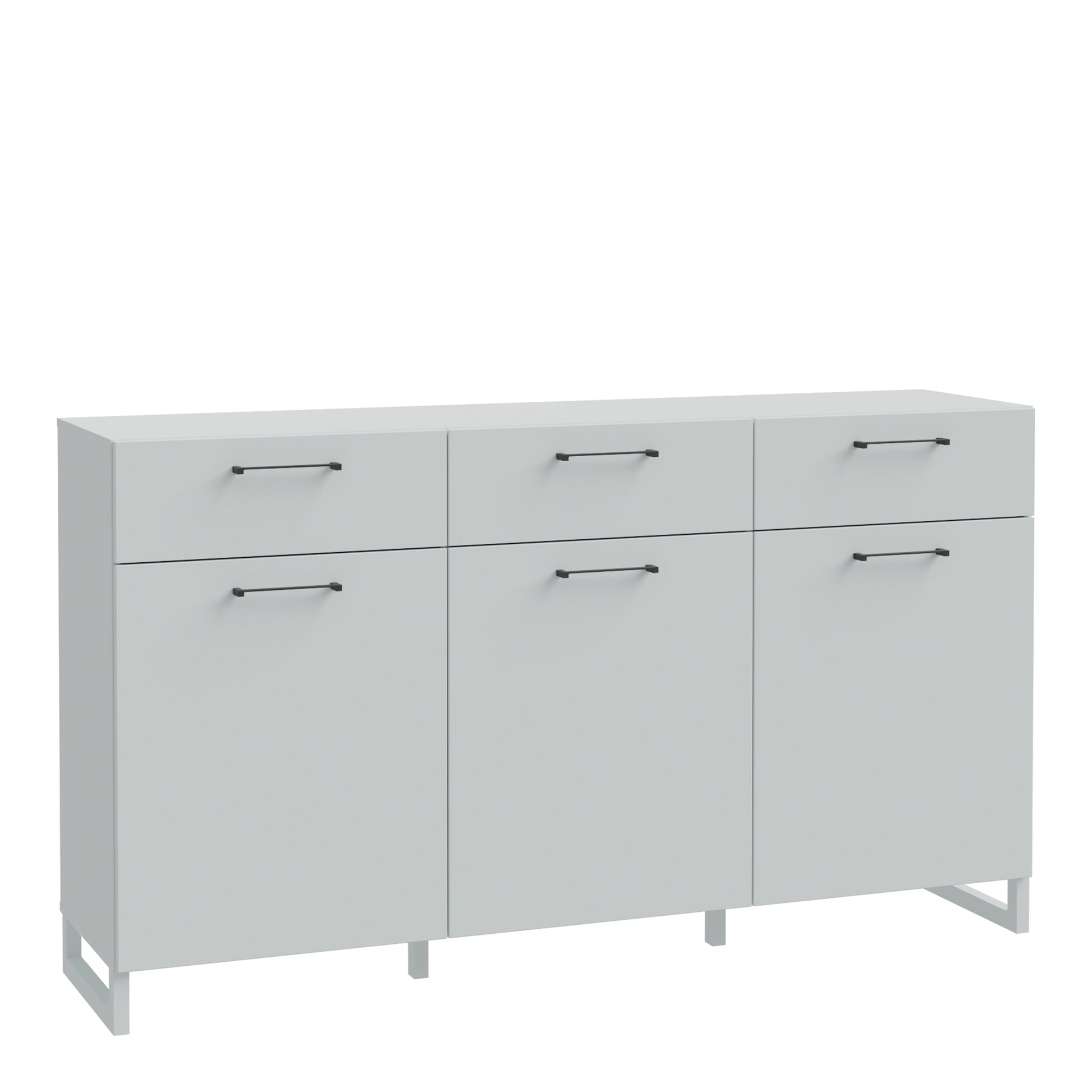 Upgrade your home with the Sali 3 Door 3 Drawer Chest in Light Grey. Modern design, solid black metal handles, durable ABS edging, and a soft-closing system for added comfort.