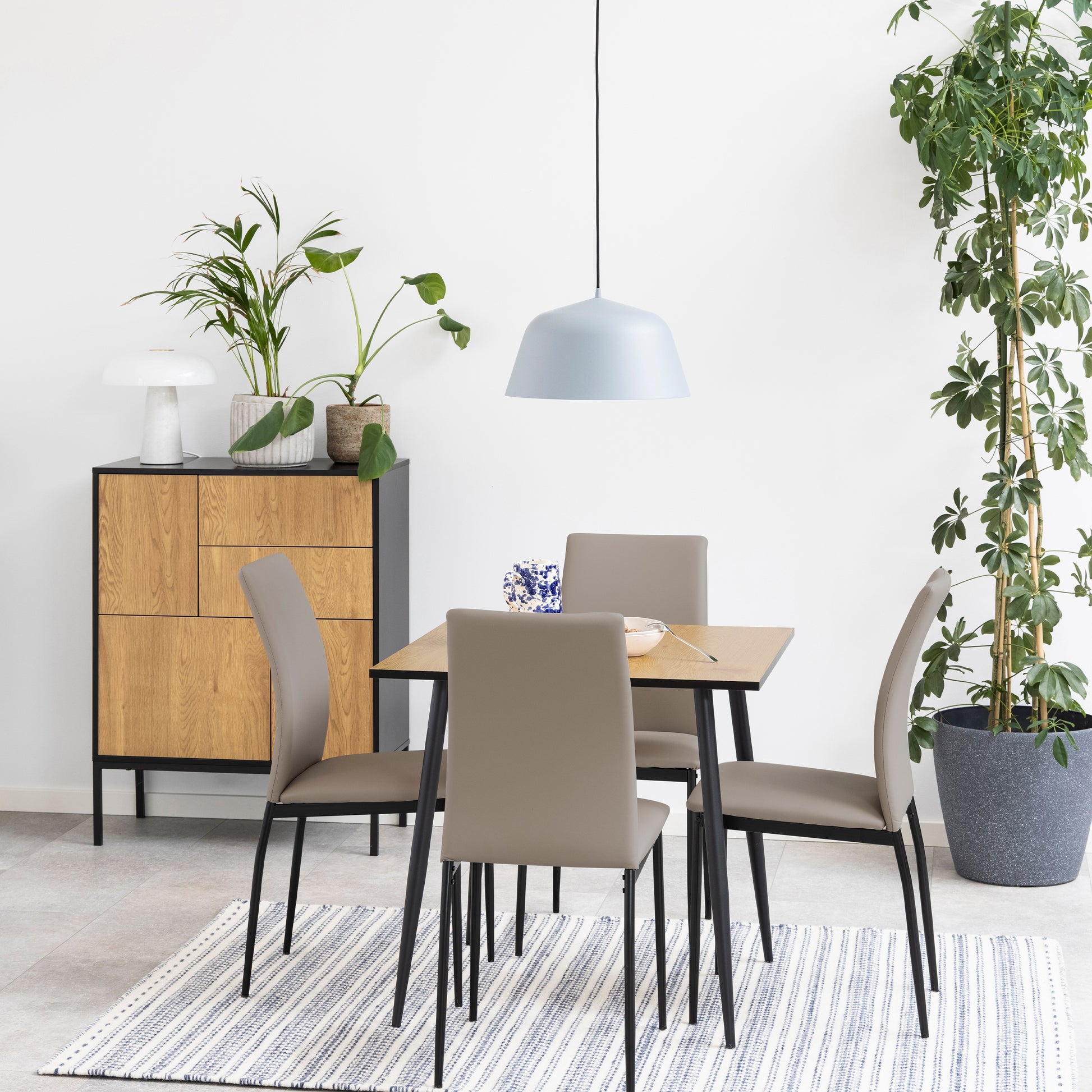 Transform your space with this versatile sideboard, crafted with a sleek black finish on the top and frame for a touch of elegance. The unit features three doors and two drawers with a matte wild oak texture, providing ample storage with a contemporary edge. The sturdy base is made of matte black powder-coated steel, and the innovative push-to-open function ensures ease of use and a streamlined appearance.