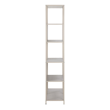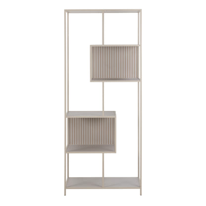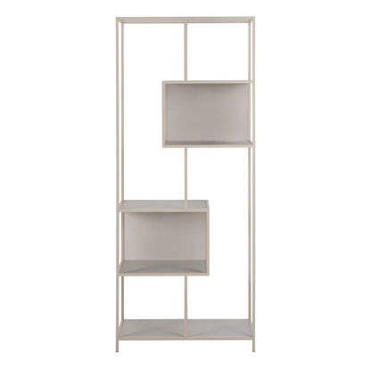 The Seaford bookcase offers a stylish and functional storage solution with a modern design. Its grey rough powder-coated steel frame and base provide sturdy support, while the five grey rough melamine shelves offer ample space for books and decor. The reversible back panel and asymmetrical detail add a unique touch, and the two slatted elements enhance the overall design. Measuring 77x35x185 cm, this bookcase is made from easy-care materials, making it both practical and easy to maintain.