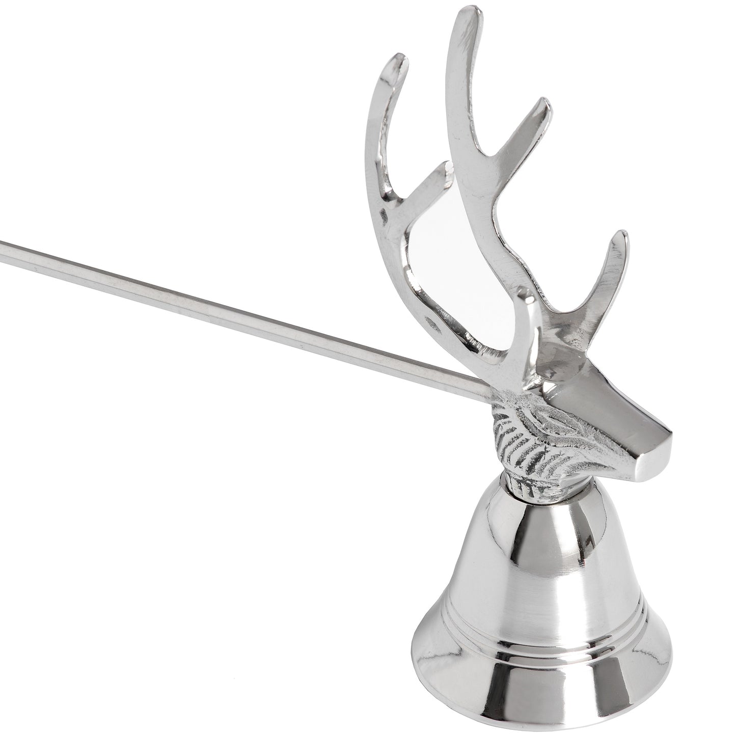 Meticulously crafted this exquisite silver stag candle snuffer introduces sophisticated rustic charm to any home decor. The sleek, elongated handle ensures safe and easy candle extinguishing, while the polished silver finish reflects light beautifully. This statement piece pairs perfectly with nature-inspired candle holders or as part of a curated tabletop display. It harmonizes with both contemporary and traditional interiors, making it an ideal addition to country cottages, modern apartments, or cozy ski chalets. The silver stag snuffer also serves as a thoughtful and unique gift for those who appreciate fine craftsmanship. Consider stocking alongside silver candlesticks, woodland-themed home accessories, or as part of a luxury candle care set. This eye-catching item is bound to spark interest among customers seeking to add a touch of whimsy and sophistication to their homes or gift selections.