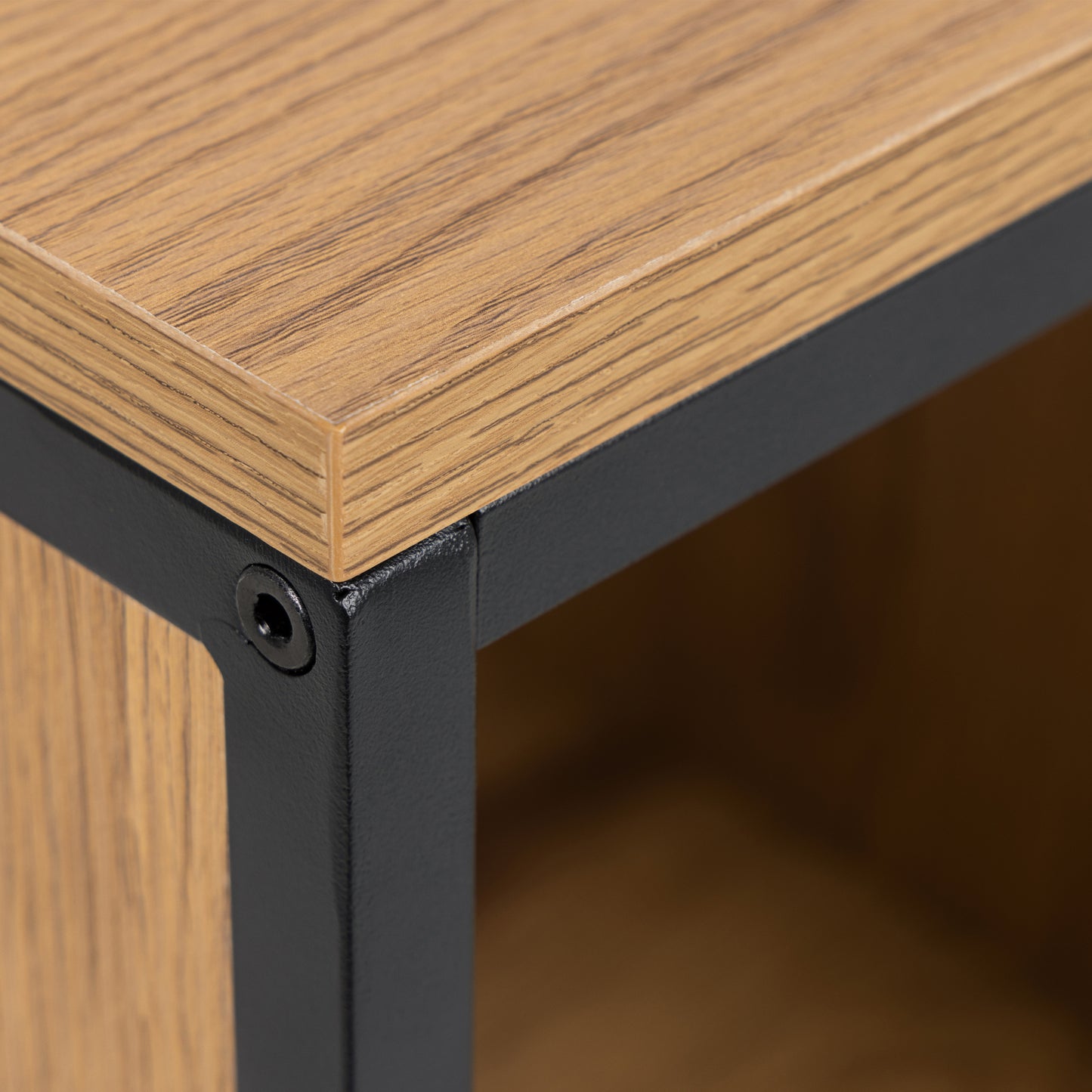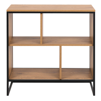 Introduce a touch of modern flair to your decor with our bookcase, which pairs a matte black steel frame and base with four shelves finished in a textured wild oak effect. The asymmetrical design adds a contemporary edge, making it a standout piece for any room.