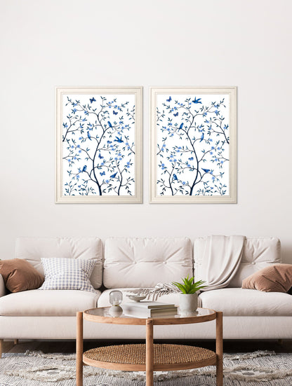 A set of 2 framed prints in an elegant design of delicate colours depicting the branches of a tree in blossom, visited by a host of butterflies and hummingbirds.Trees have always been a symbol of wisdom, fertility and life itself.