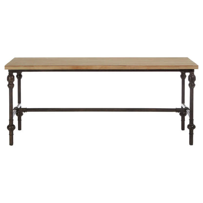 The tabletop is crafted from exquisite fir wood, boasting a stunning golden hue that is complemented by its delicate grain. Its pipe-style frame exudes a chic, upcycled factory aesthetic, with its black metal finish adding a touch of texture. Featuring rounded knops, this piece adds a subtle touch of elegance to its angular industrial design. For the ultimate in luxury, pair it with the metallic mirror from our exclusive Tribeca collection.