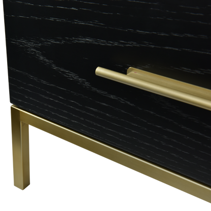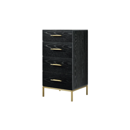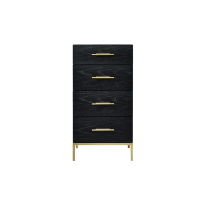 The Tulip Narrow Chest adds the extra finishing touch to a room with limited space. Its black oak finish and brass handles add style and will be sure to uplifts your room with an elegant finish.