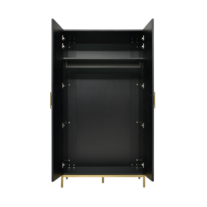 The Tulip 2 Door Wardrobe not only adds elegance to your bedroom, but also offers plenty of storage space for your clothing. Stylishly designed in a gorgeous black oak finish with sleek brass handles, this really is a must have piece. The fine detail of the wood markings and the simplistic yet luxurious brass frame are the perfect contrasting combination.