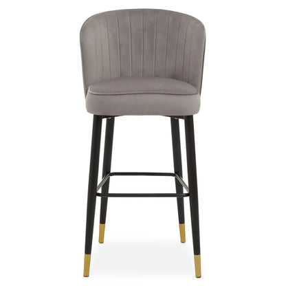 The Vieste Grey Velvet Bar Chair boasts luxurious grey velvet upholstery. The sumptuous cushioned seat and backrest offer unparalleled comfort for a truly indulgent seating experience. The sleek and minimalist mid-century design adds an elegant touch to any space.