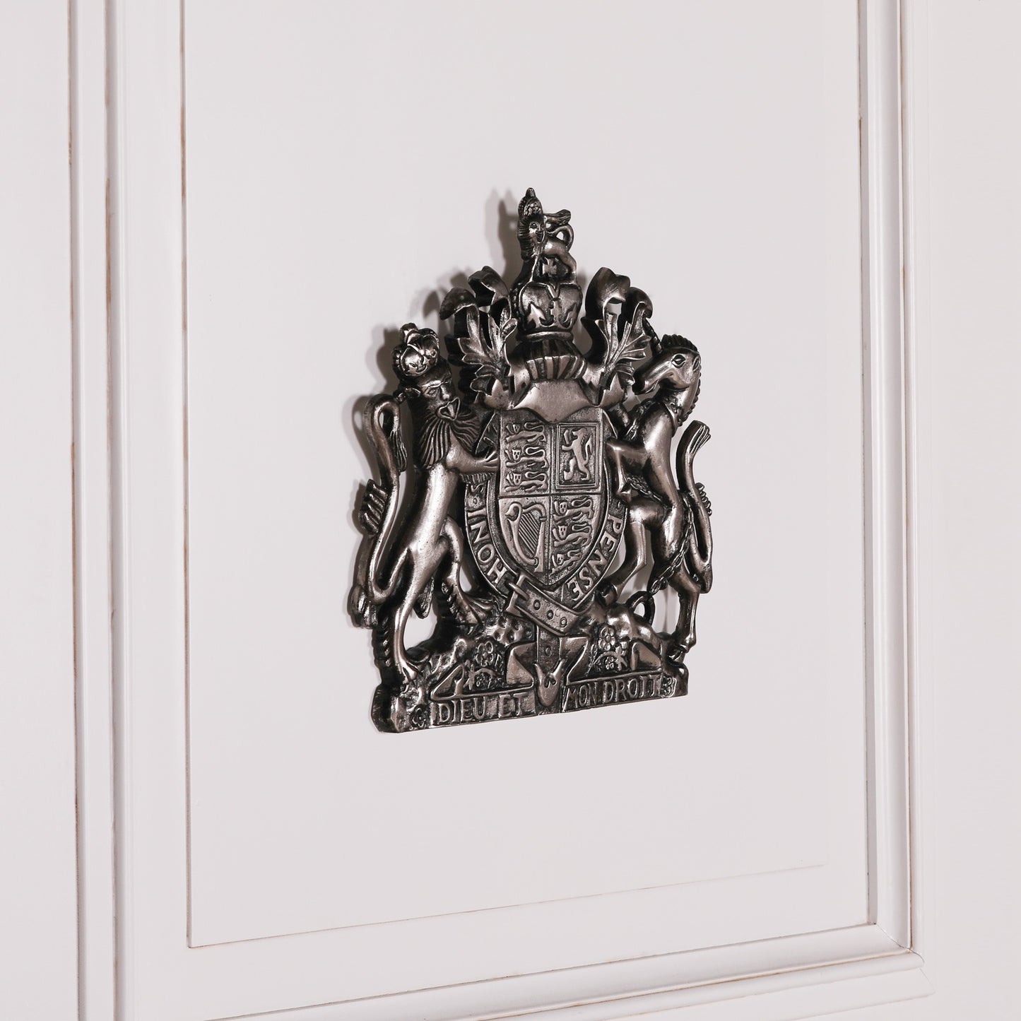 Embody the regal charm of a bygone era with our Vintage Silver Style Cast Metal Coat of Arms. This exquisitely crafted piece stands at 37cm, radiating strength and nobility. Elevate the sophistication of any room with this elegant symbol of heritage and prestige.