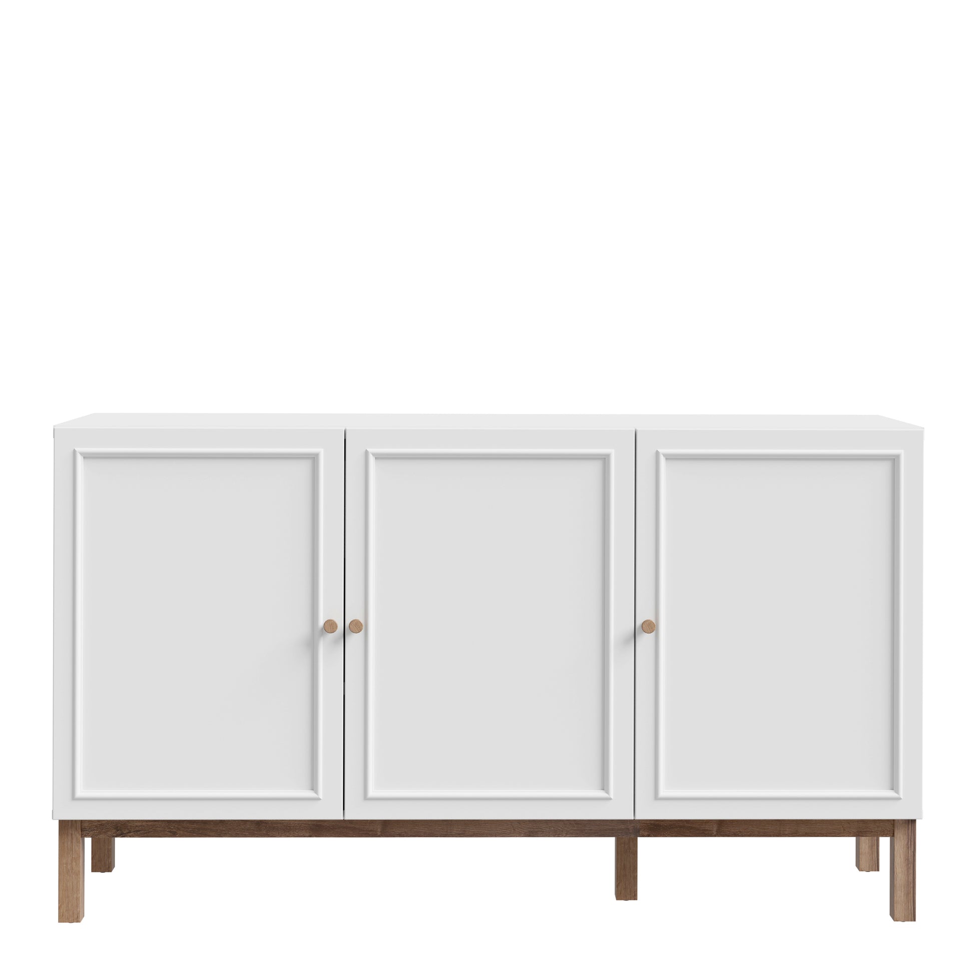 Enhance your home with the Wensley 3 Door 1 Drawer Sideboard in Light Grey and Oak. Modern design, full-extension drawer slides, and chic wooden knob handles.