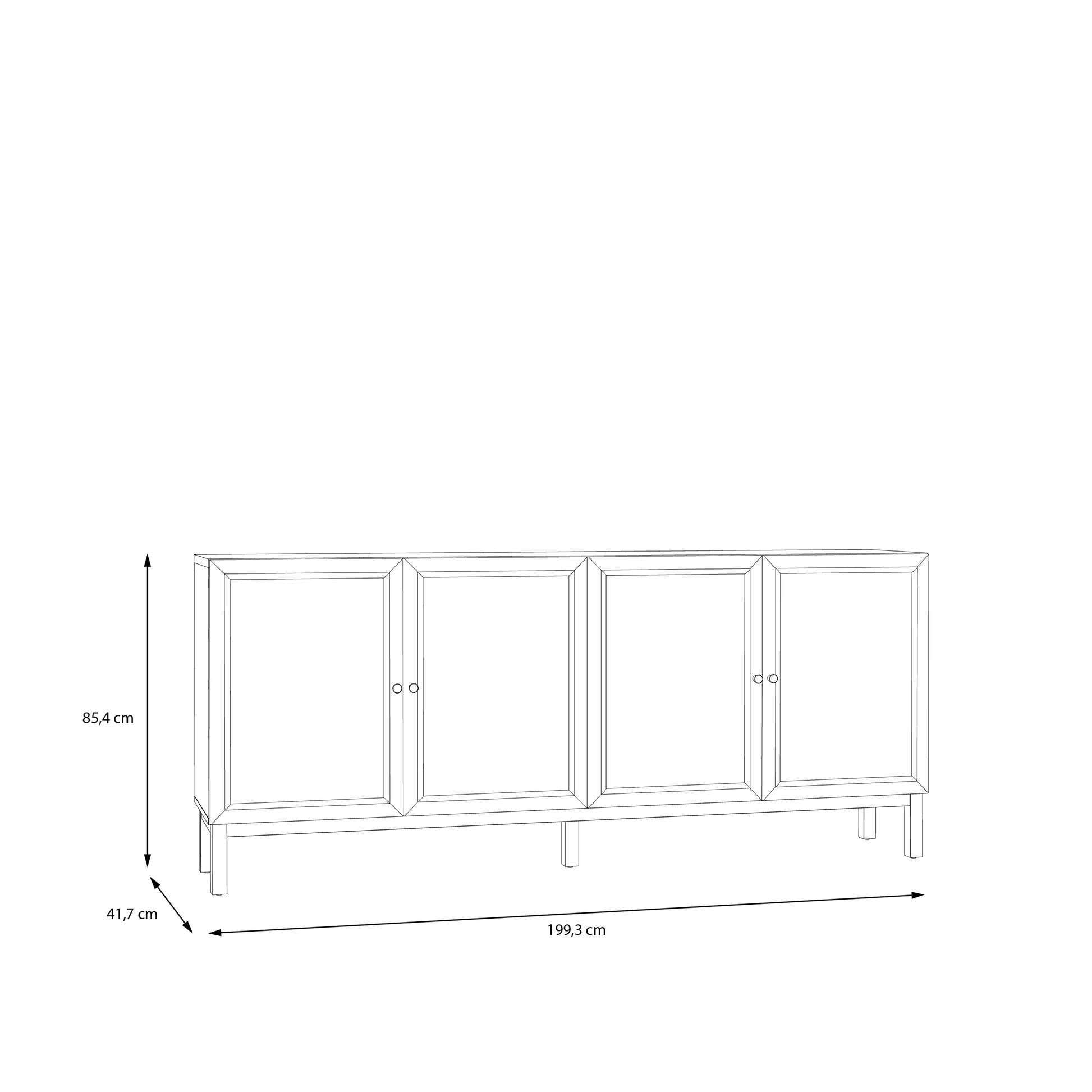 Upgrade your decor with the Wensley 4 Door 1 Drawer Sideboard in Light Grey and Oak. Modern design, full-extension drawer slides, and elegant wooden knob handles.