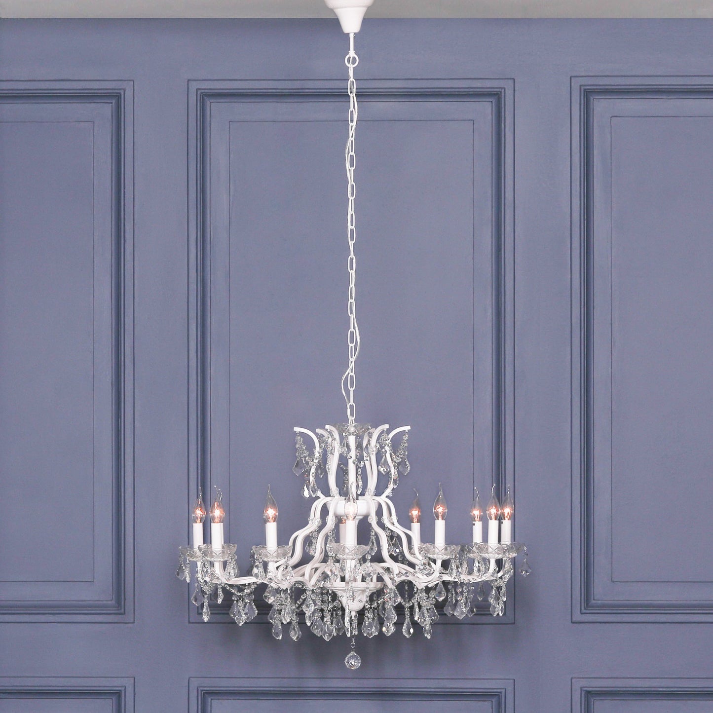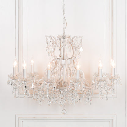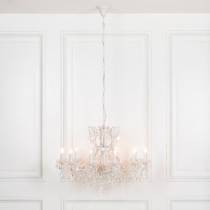 Enhance your space with our White 12 Branch Shallow Cut Glass Chandelier. The intricate design showcases expertly crafted shallow cut glass branches, exuding an air of sophistication and luxury. Illuminate any room with elegance and style. A stunning addition to any modern or traditional décor.