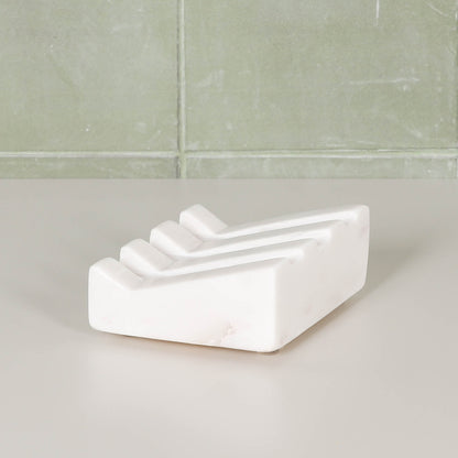 This soap holder, crafted from exquisite white marble, elevates the everyday into a luxurious experience. With intricate grooves carved into its surface, it not only provides a sturdy rest for your soap, but also adds an element of sophistication to your bathroom decor. Embrace the finer things in life with this elegant soap holder.